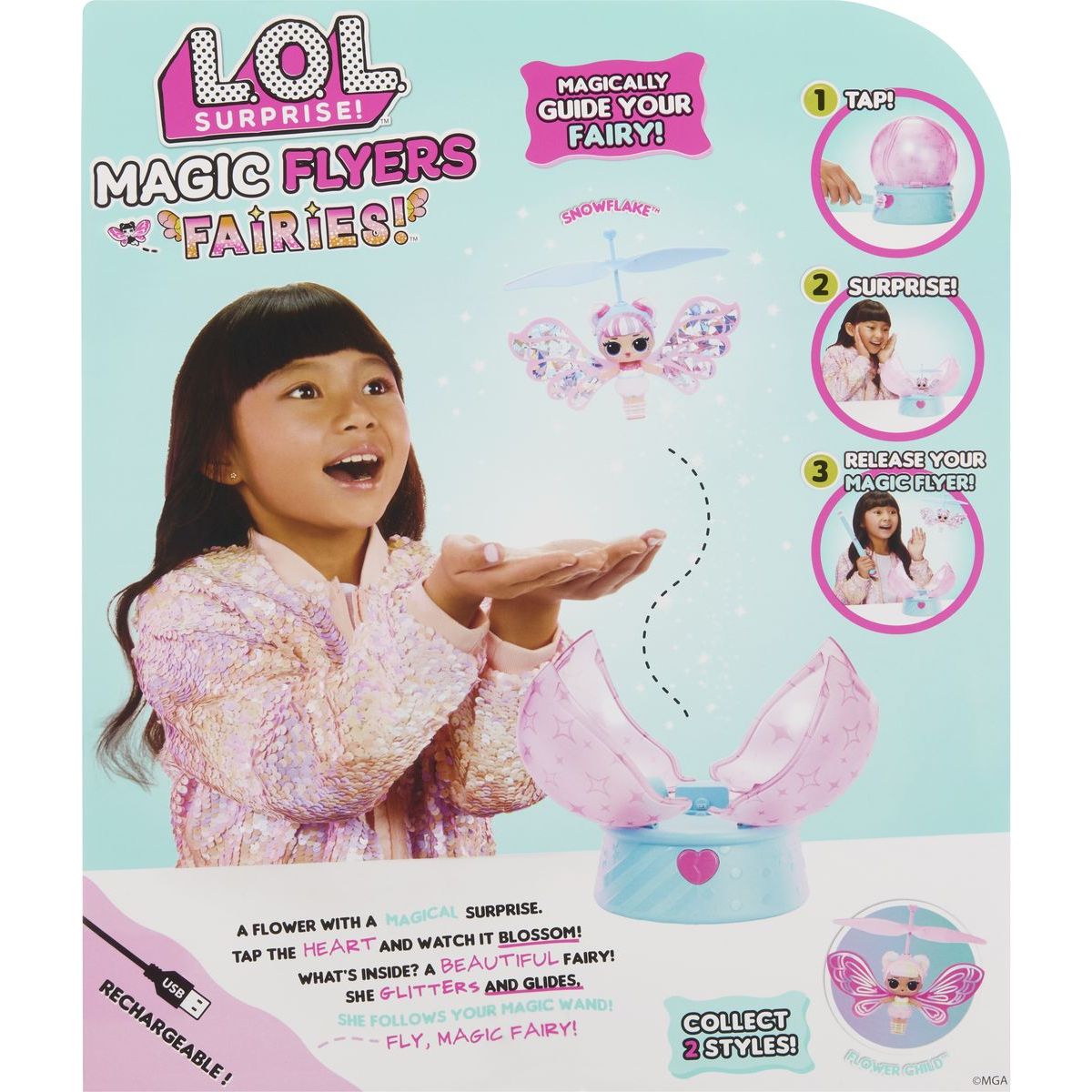 Objav kúzlo lietajúcej víly Snowflake zo série L.O.L. Surprise! Táto trblietavá víla ožije po poklepaní na srdce kvetu v jej nádhernom obale v tvare kvetu. Let môžeš ovládať rukou alebo kúzelnou paličkou, ktorá je súčasťou balenia, takže zábava nikdy nekončí! Súčasťou je aj Micro USB kábel pre nabitie Li-Po batérie, aby mohla víla lietať znova a znova. Veľkosť bábiky je približne 8 cm a je vhodná pre deti od štyroch rokov.