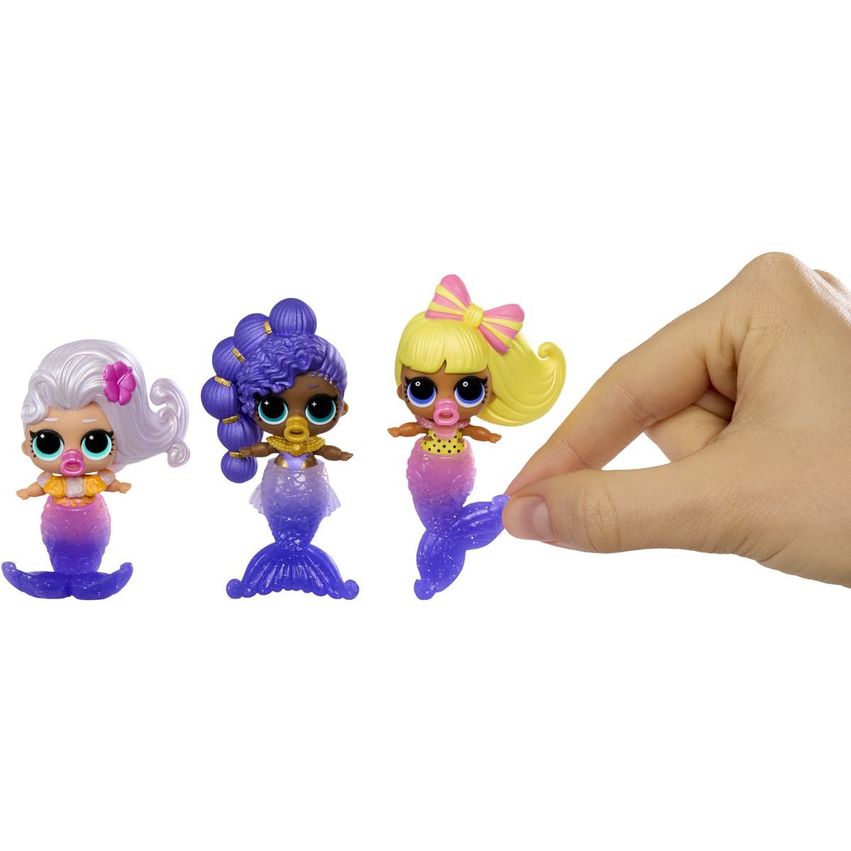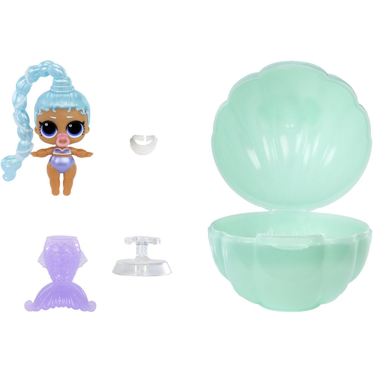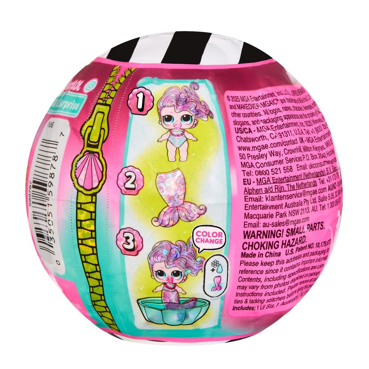 Premeni svoju L.O.L. sestričku na krásnu morskú pannu! V balení nájdeš bábiku s doplnkom a morskú plutvu, ktorá mení farbu v ľadovej vode. Stačí ju nasadiť a môžeš ju vystaviť v praktickom obale. Nazbieraj všetkých šesť postavičiek z tejto série a objavuj každý deň nový príbeh pod hladinou mora!