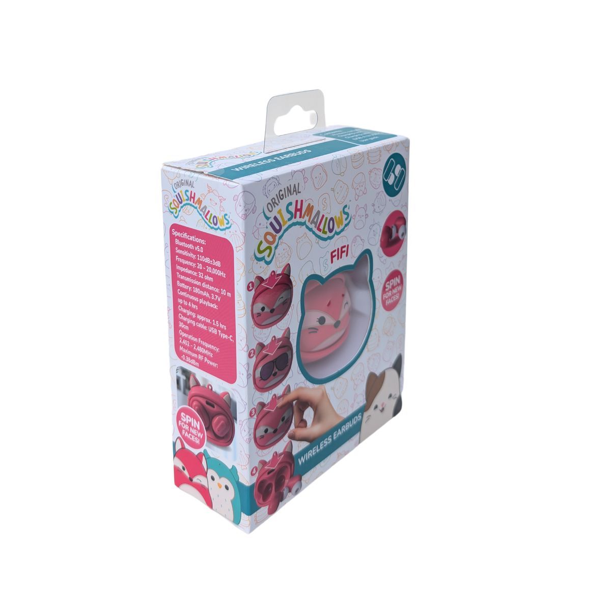 Lazerbuilt Squishmallows Face-change TWS Earbuds - Fifi sú skvelým doplnkom pre deti od šiestich rokov! Bezdrôtové slúchadlá majú nabíjacie puzdro s otáčavou technológiou, ktorá mení tvár postavičky podľa nálady a zároveň odhaľuje slúchadlá pripravené na počúvanie hudby alebo prijímanie hovorov. Dotykové ovládanie umožňuje jednoducho prehrávať obľúbené pesničky alebo ich pozastaviť či preskočiť ďalej podľa potreby malých používateľov. Bluetooth pripojenie funguje spoľahlivo až do vzdialenosti desiatich metrov, čo znamená, že telefón môže zostať bezpečne uložený počas hier či vonkajších aktivít.