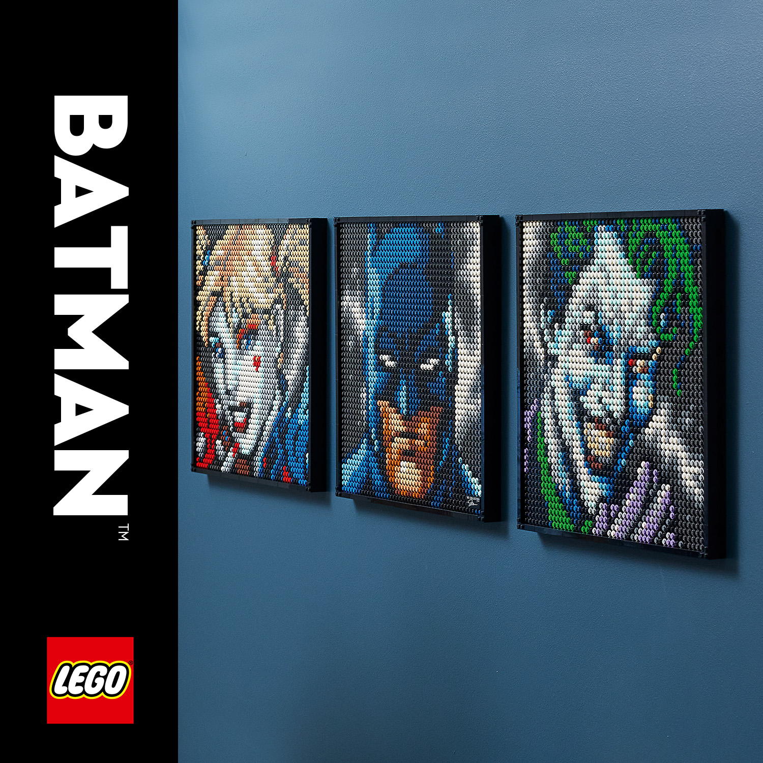 Táto stavebnica LEGO® Art umožňuje fanúšikom komiksov od DC postaviť si portrét Batmana, Harley Quinn™ alebo Jokera.