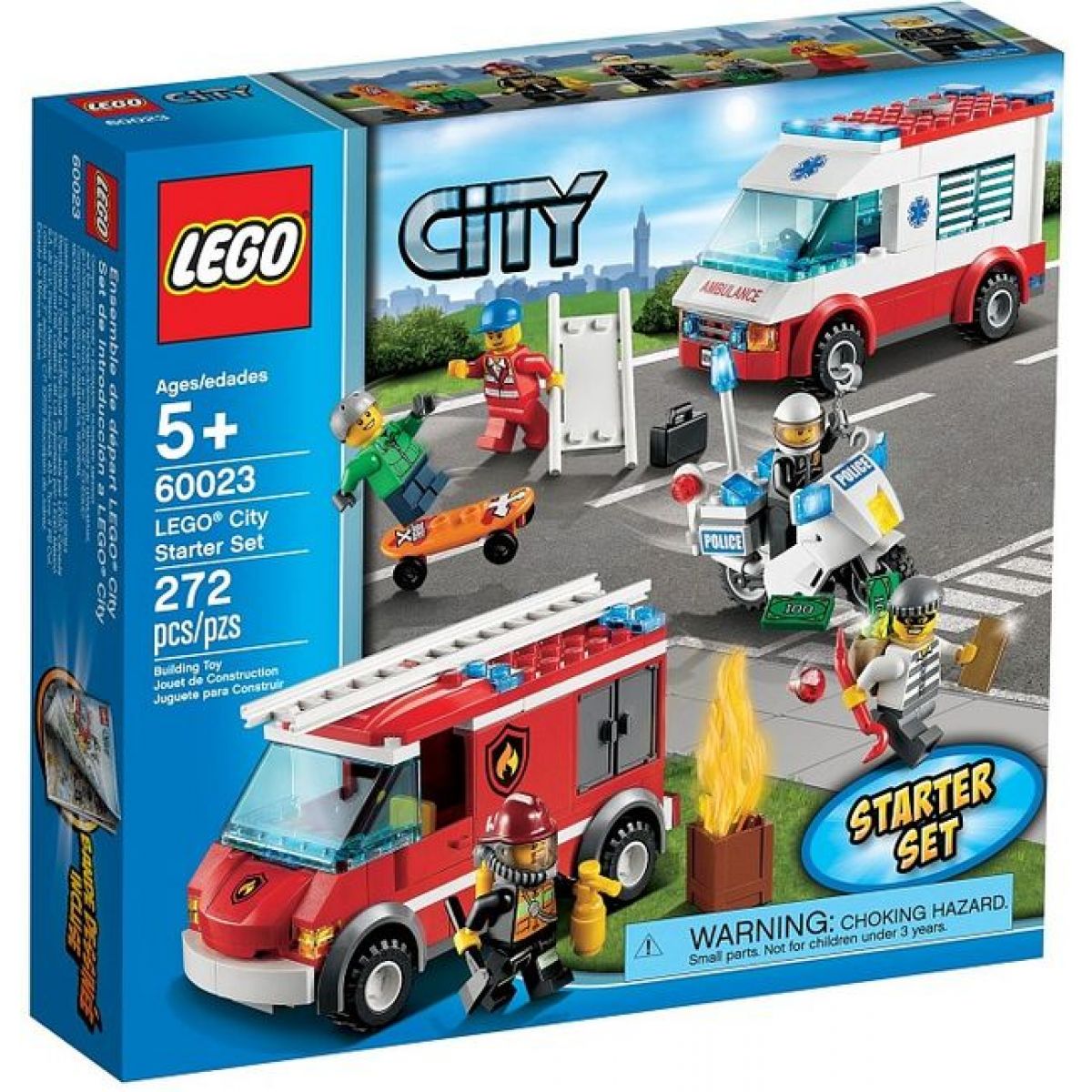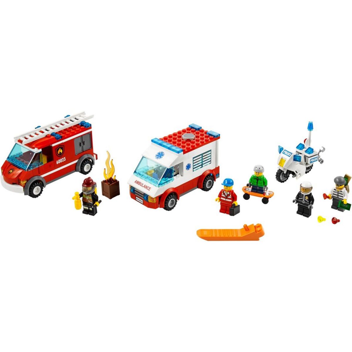 Vstup do světa zábavného stavění se začátečnickou sadou LEGO® City, která obsahuje 3 klasická vozidla. Chyť zloděje s policistou na motorce! Uhas oheň pomocí rychlého hasičského auta. Pak vyraž se sanitkou na pomoc zraněnému skejťákovi. Vytvořte nekonečné možnosti hry s mnoha inspirativními nápady, které malí stavitelé ocení během záchrany různých situací! Obsahuje 5 minifigurek s doplňky: zloděje, policistu, hasiče, záchranáře a skejťáka.