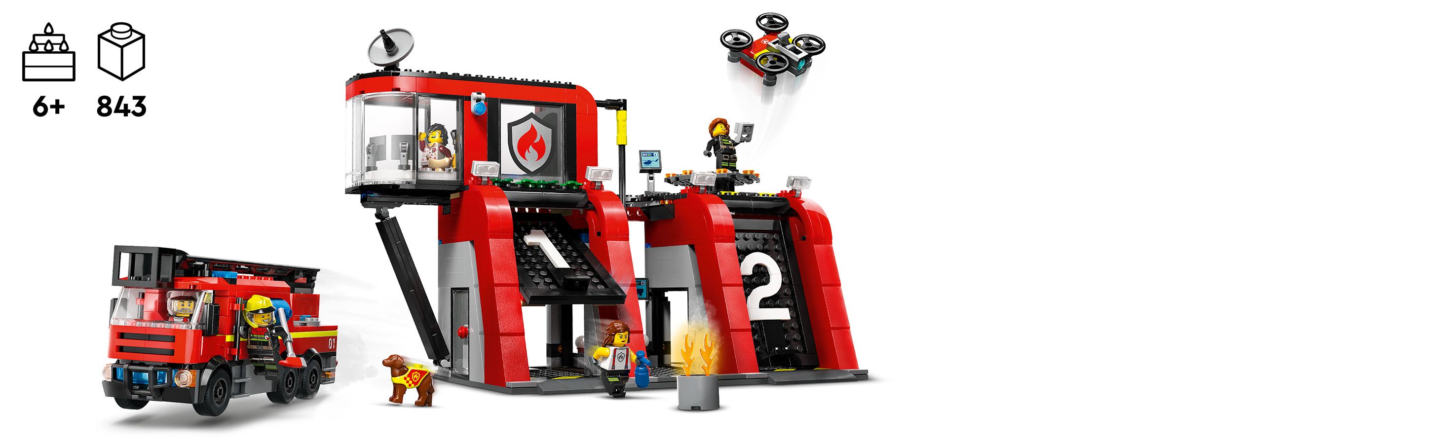 Obsahuje päť minifigúrok hasičov a figúrku hasičského psa.