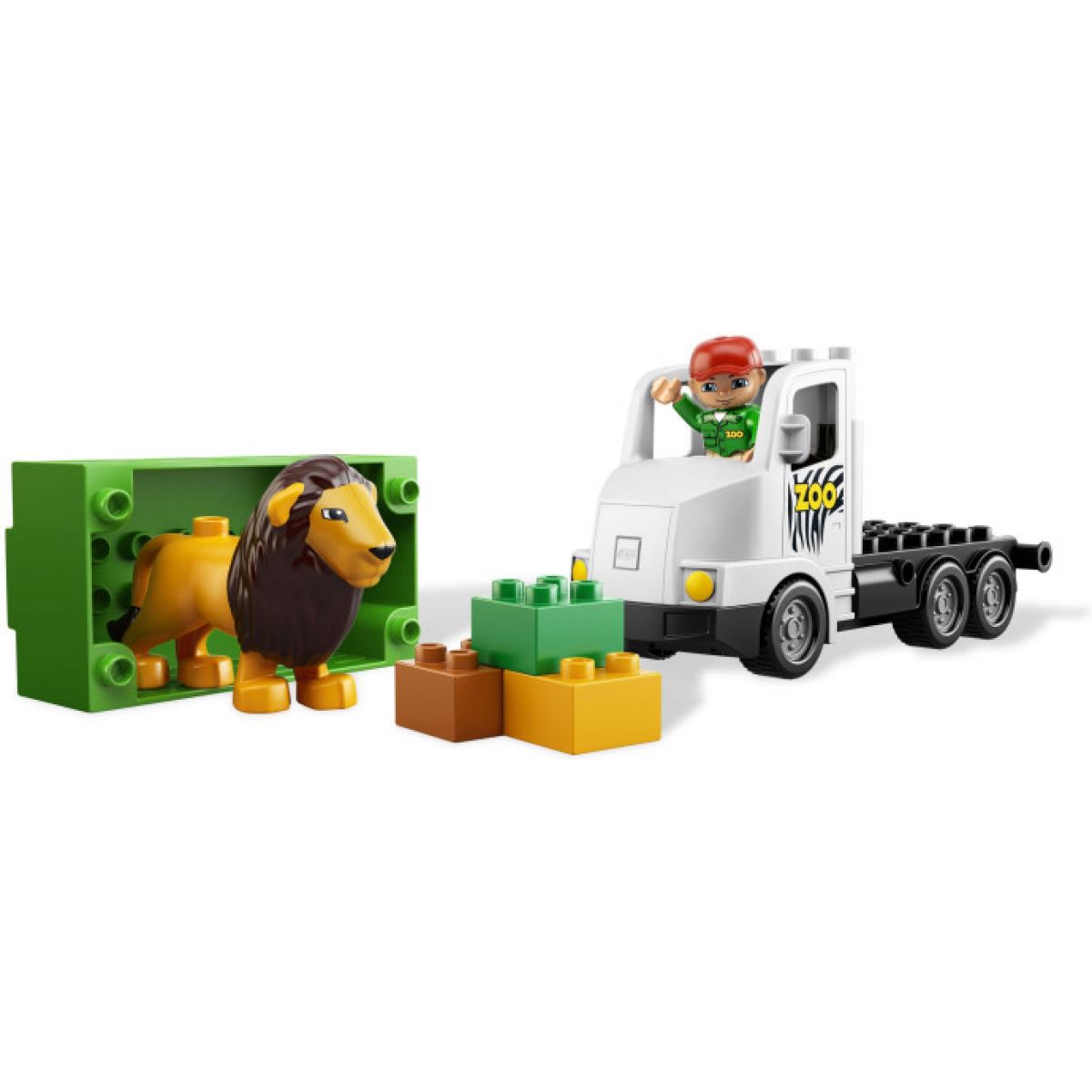 Velkého lva převážejí do nové zoo. Nalož ho do auta, naskoč do kabiny a odvez ho do jeho nového domova. Ale pozor, jeď opatrně. Nechceme, aby se lvu udělalo špatně! Obsahuje LEGO DUPLO figurku lva a DUPLO figurku ošetřovatele.