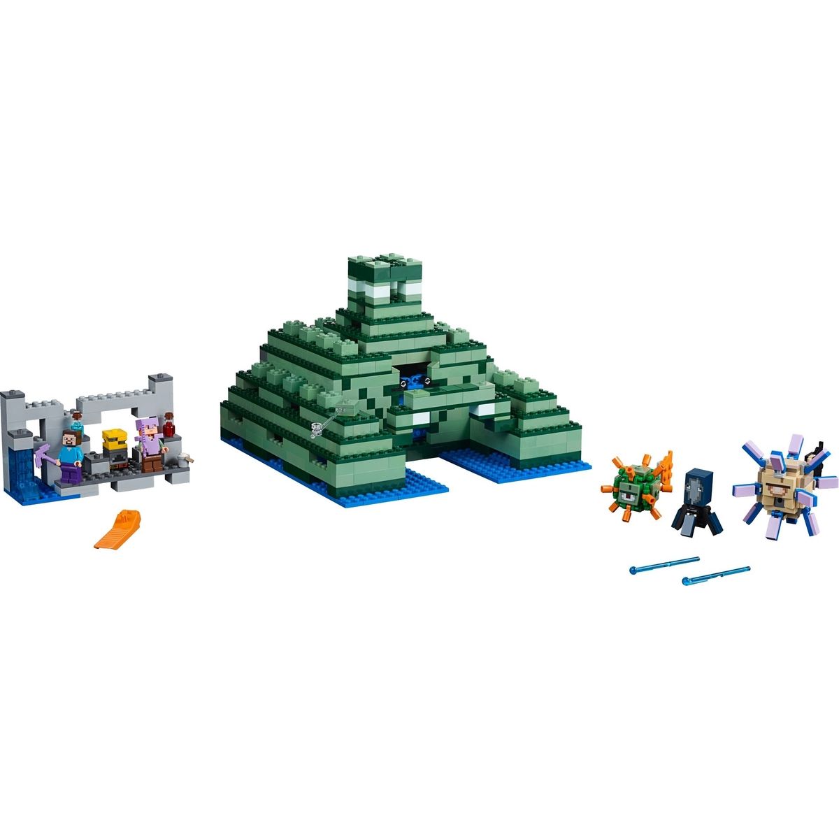 Vydaj sa do hlbín morí vo svete Minecraft ™ a objav Pamätník v oceáne. Stretni sa so starším strážcom s pružinovým vystreľovačom, aktivuj funkciu suchých morských húb, dostaň sa do pamätníka a nájdi páku na otvorenie miestnosti s pokladom, ktorá je plná zlatých blokov. Užívaj si tvorivá dobrodružstvo zo sveta Minecraft ™ s touto ľahko prestaviteľnou stavebnicou.