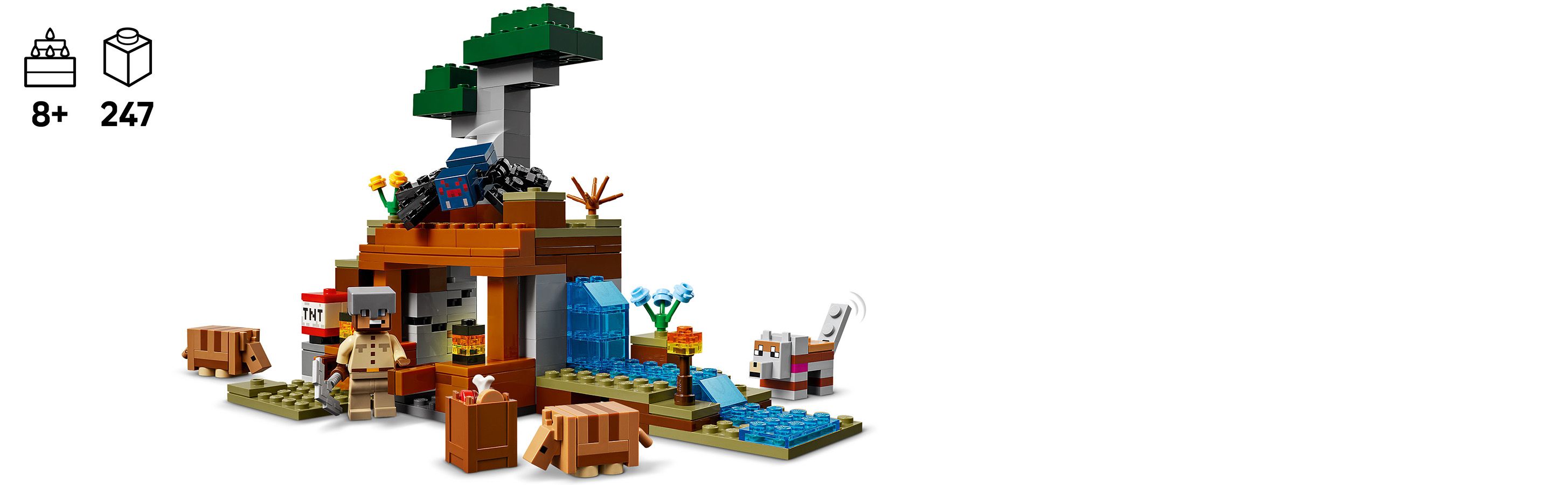 Model je vyrobený podľa námetu obľúbenej videohry a je výbornou výzvou pre malých staviteľov. Po zostavení si môžu prehrať príbeh v hernom biome savany, kedy využijú mínu s pákou, ktorá ovláda funkciu dynamitu. Ten odstrelí kus terénu a odhalí vzácnu rudu. Pre chytré telefóny a tablety je možné využiť stiahnutie bezplatnej aplikácie LEGO Builder, ktorá prináša nástroje na zobrazovanie, približovanie a otáčanie.