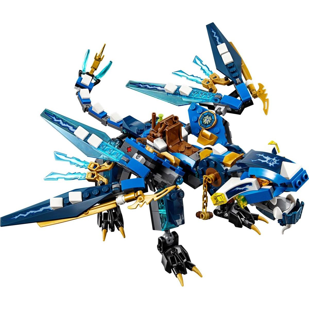 Drak blesku má pohyblivou hlavu, čelisti, křídlo i ocas a umí zaujímat bojové postoje, které mu dávají možnost vyhýbat se Crayenovu háku střílenému z harpuny a šestihlavému vystřelovači pirátského letounu. V dračím sedle mohou kluci sestřelit letouna vysbodit tak Nya z džinovy čepele.