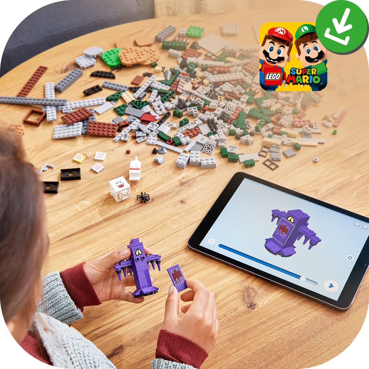 Aplikácia LEGO® Super Mario™ je pripravená na stiahnutie zadarmo. Deti objavia návody na stavanie aj kreatívnu hru. Zoznam kompatibilných zariadení so systémom Android a iOS nájdete na stránkach LEGO.cz/devicecheck.
