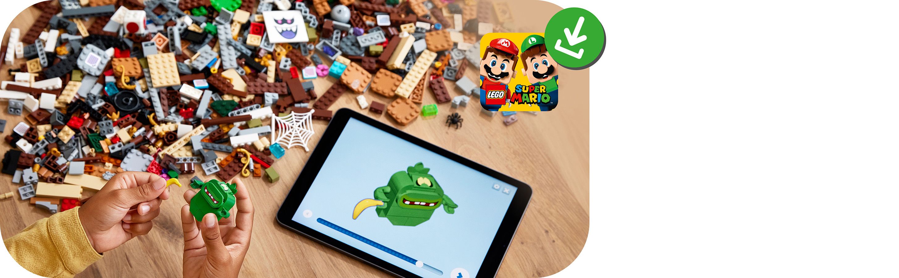 Aplikácia LEGO® Super Mario™ je pripravená na stiahnutie zadarmo. Deti objavia návody na stavanie aj kreatívnu hru. Zoznam kompatibilných zariadení so systémom Android a iOS nájdete na stránkach LEGO.cz/devicecheck.