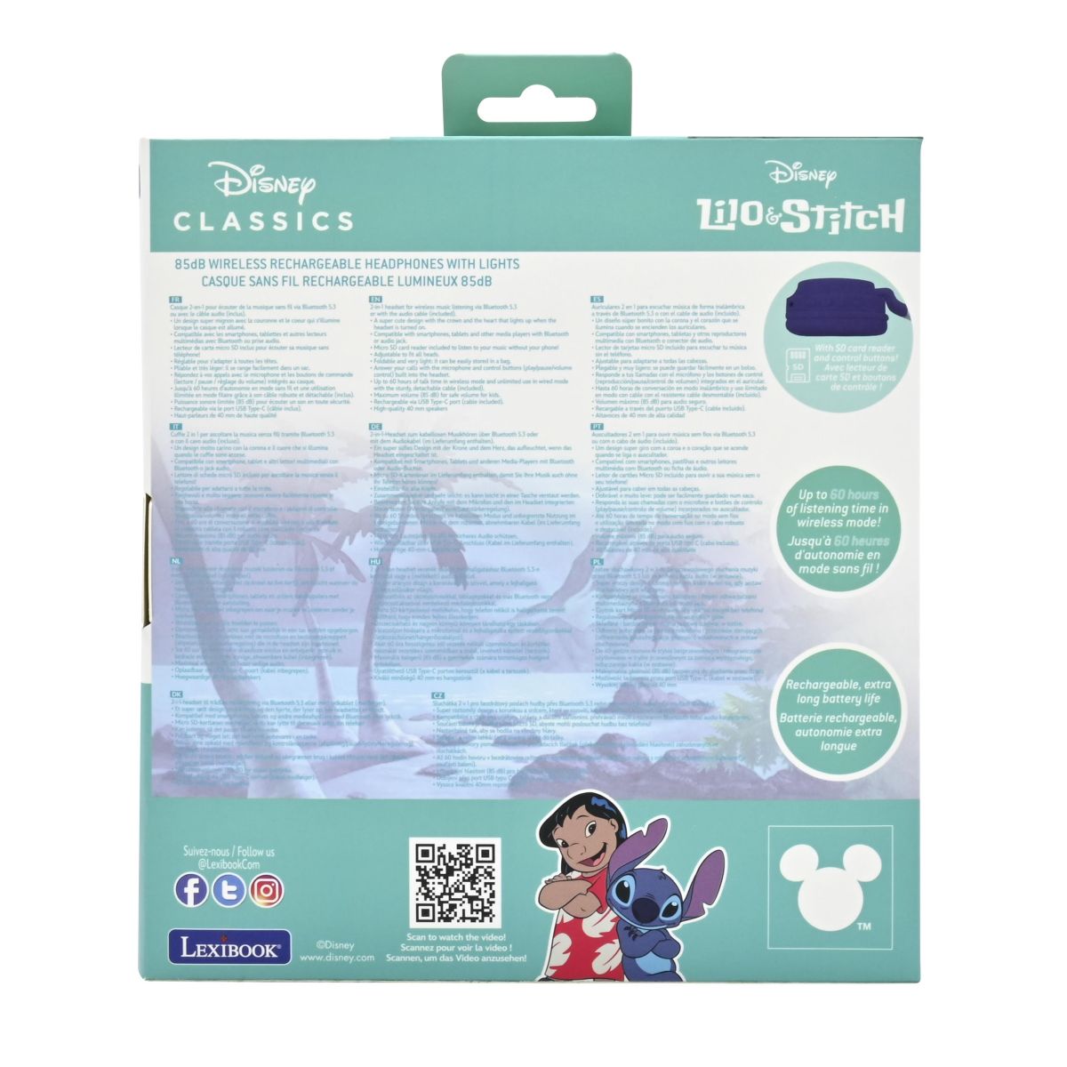 Lexibook 3D bezdrôtové slúchadlá Stitch sú skvelým spoločníkom pre deti od 4 rokov pri počúvaní rozprávok, hudby alebo učenia sa. Vďaka limitu hlasitosti je ich používanie úplne bezpečné a svetelné efekty spravia radosť každému malému poslucháčovi.