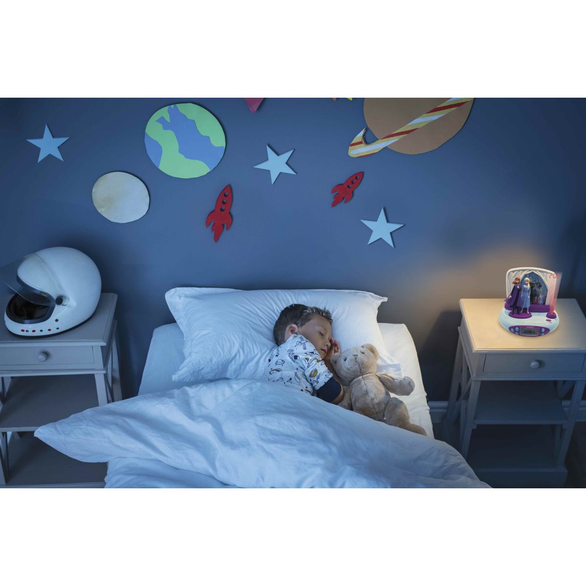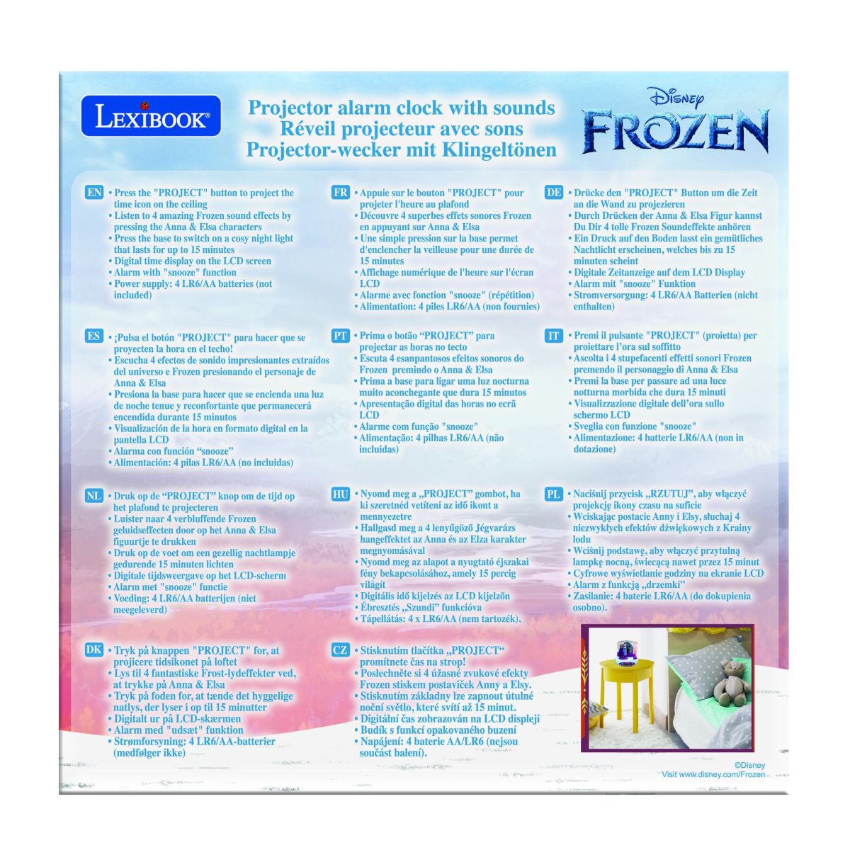 Ranné vstávanie môže byť veselšie s Lexibook 3D budíkom Frozen! Vďaka projekcii času na stenu si deti ľahko osvoja pojem času a izba ožije ich obľúbenými postavičkami z Frozen.