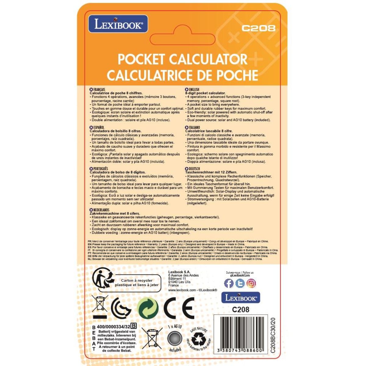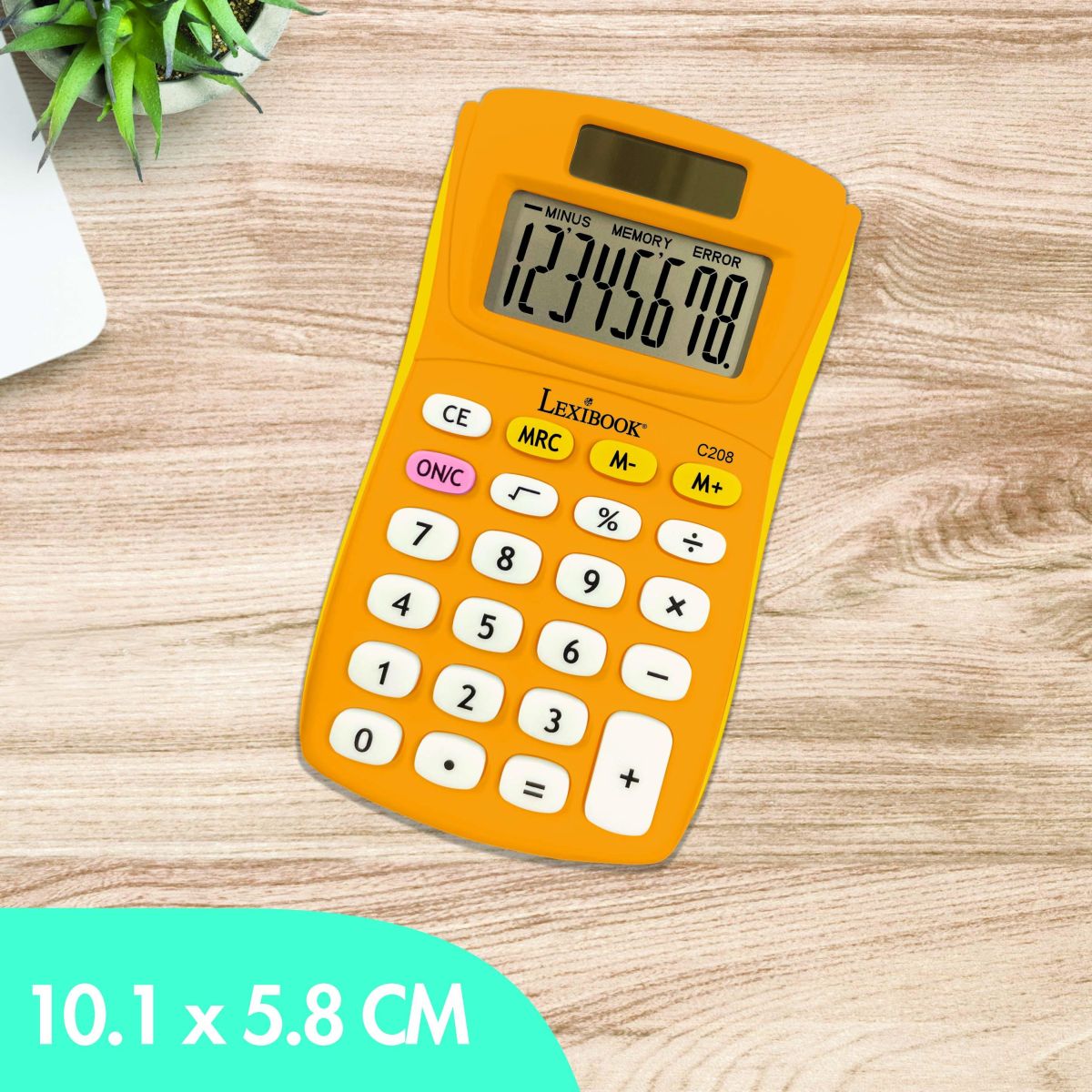 Je navrhnutá tak, aby bola odolná a bezpečná, čo poteší aj rodičov. Kompaktné rozmery umožňujú deťom nosiť ju všade so sebou – do školy či na výlety. Kalkulačka má 8-miestny displej a napája ju knoflíková batéria LR54 (AG10), ktorá je súčasťou balenia.