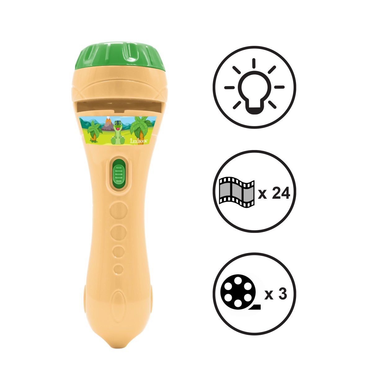 Vďaka výmenným kotúčom si deti môžu jednoducho meniť scény a naplno zapojiť fantáziu. Praktická baterka s jednoduchým ovládaním je ideálna na večerné hranie aj rozprávanie pred spaním a vďaka kompaktnému prevedeniu ju možno vziať kamkoľvek so sebou.