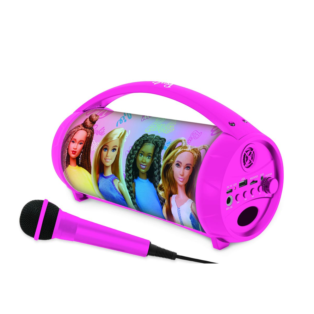 S Lexibook bluetooth reproduktorom Barbie s mikrofónom svietiacim sa deti zabavia pri speve doma aj na oslavách.