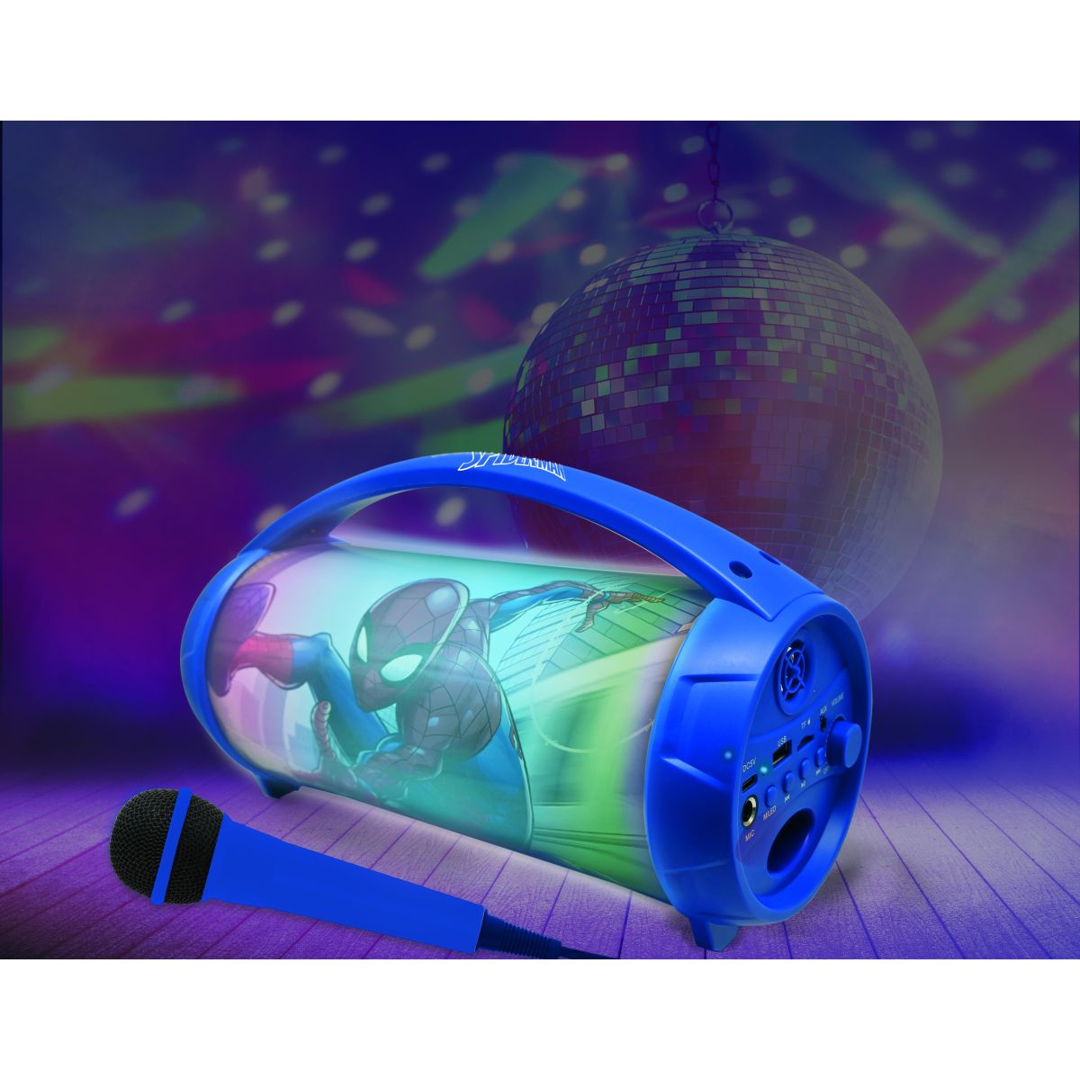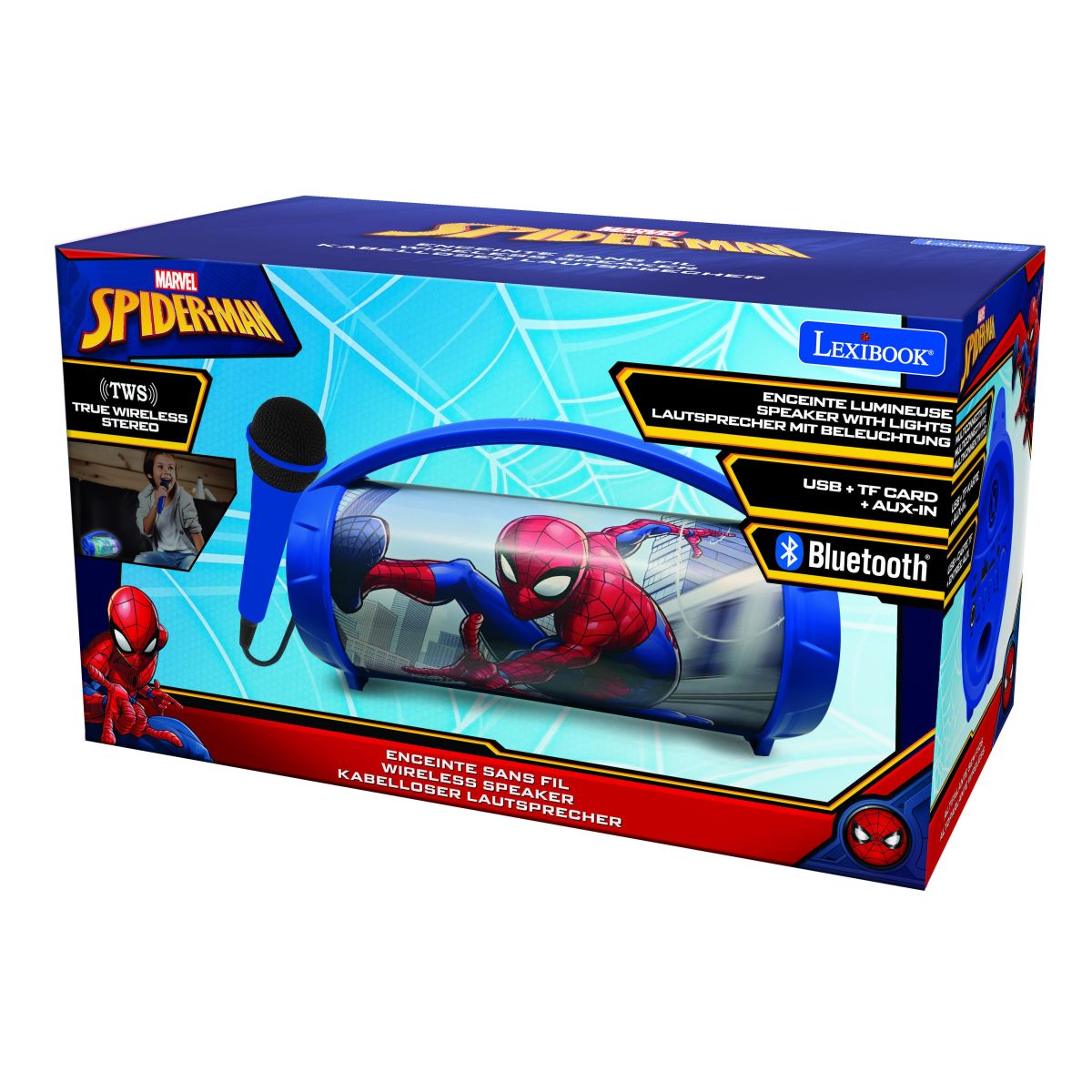 Lexibook bluetooth reproduktor Spiderman s mikrofónom svietiaci je skvelá zábava pre deti doma aj na oslavách.