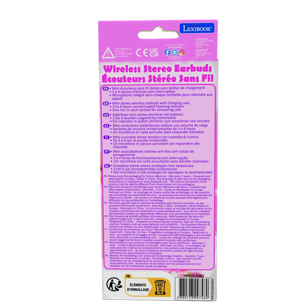 Lexibook detské Bluetooth slúchadlá do uší s motívom Jednorožec prinášajú čarovný svet hudby aj komunikácie v hravom dizajne, ktorý si deti obľúbia. Bezdrôtové prevedenie umožňuje voľný pohyb a pohodlné používanie doma aj na cestách.