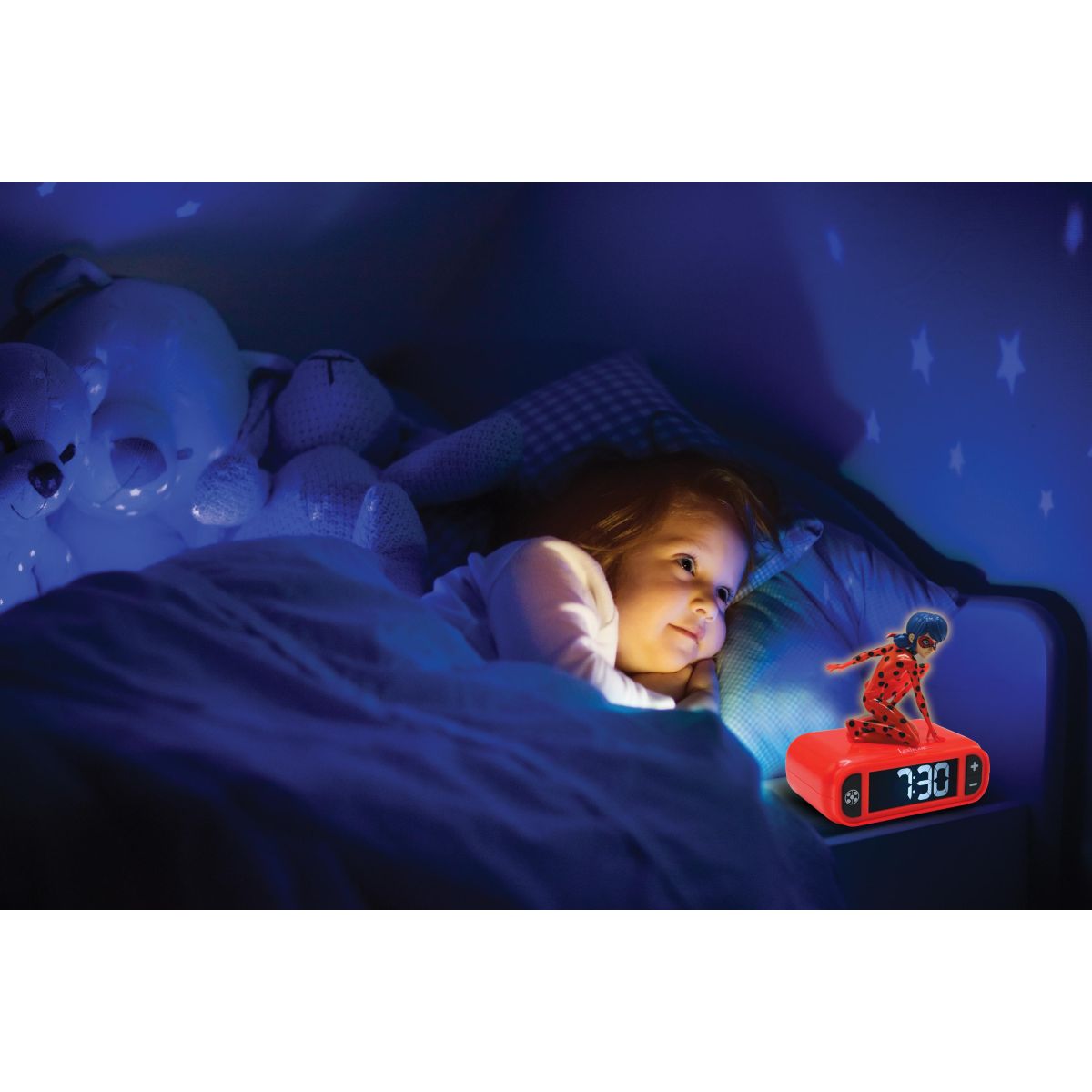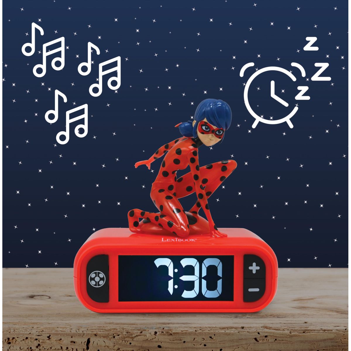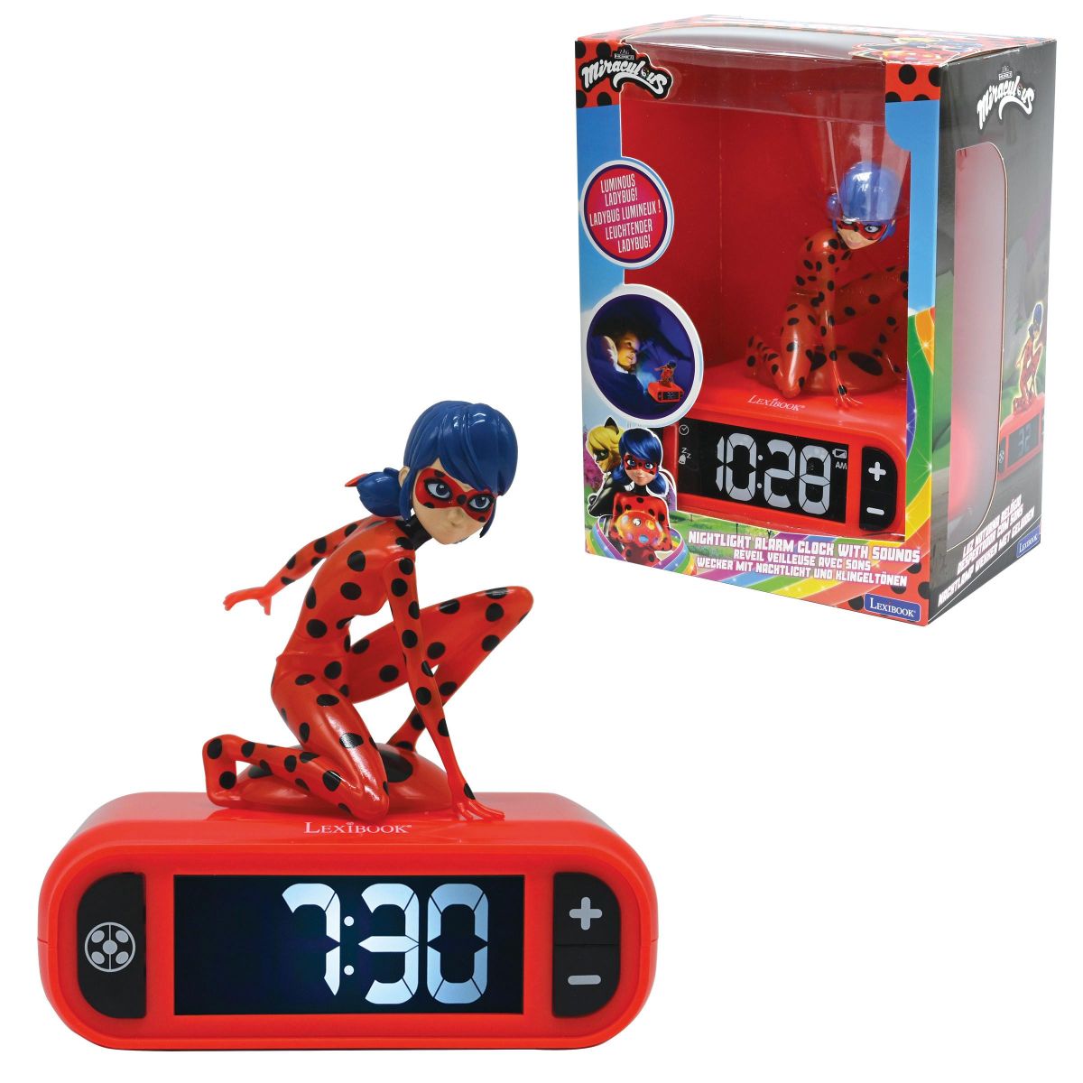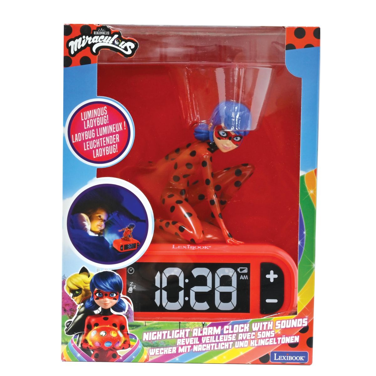 Lexibook budík Čarovná Lienka so svietiacou figúrkou spríjemní ranné vstávanie deťom od 6 rokov. Prehľadný displej a jednoduché ovládanie umožnia malým používateľom ľahko nastaviť čas.