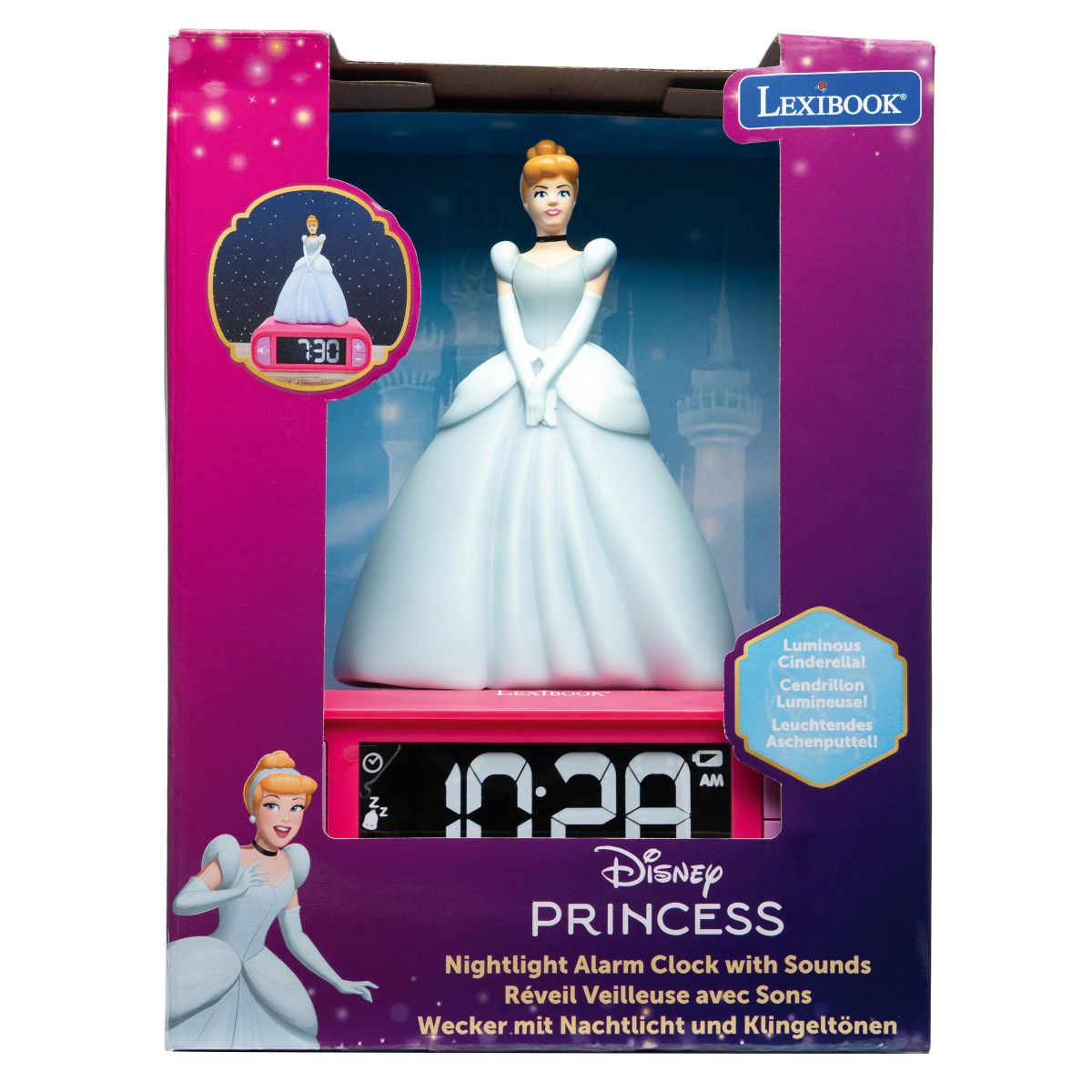 Budík Lexibook Disney princezné so svietiacou figúrkou spríjemní každé ranné vstávanie vašim deťom. Prehľadný displej a jednoduché ovládanie umožňujú pohodlné používanie aj menším deťom.
