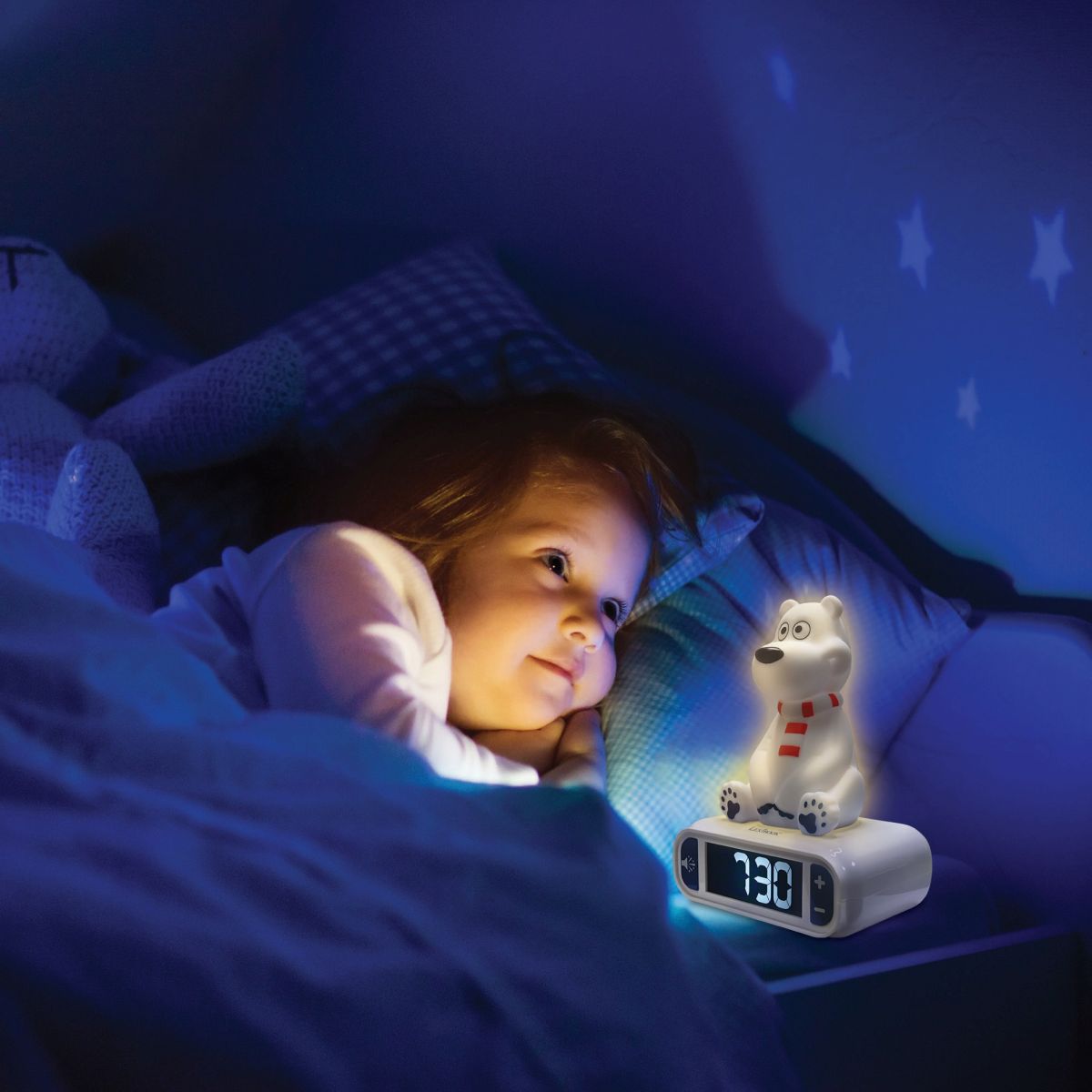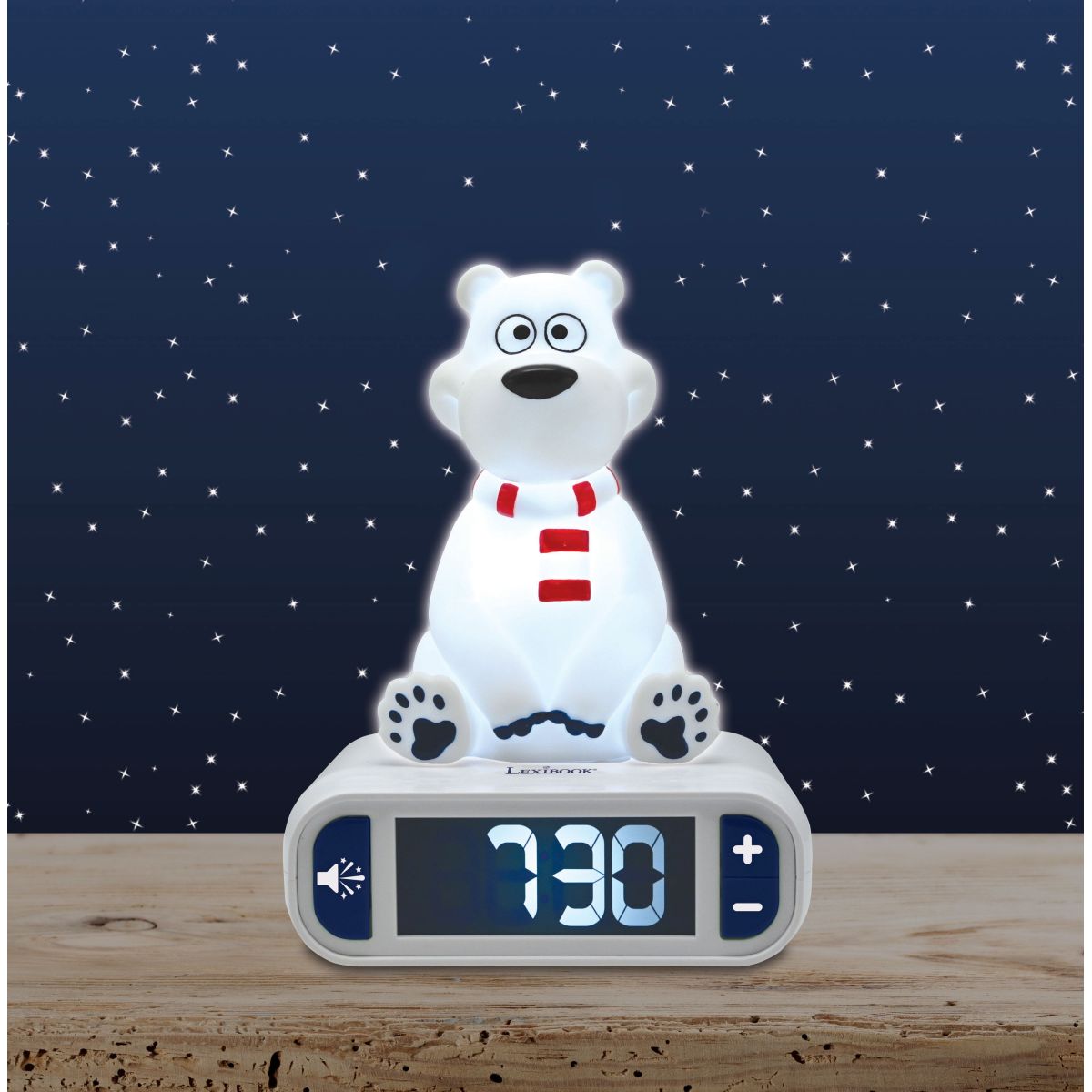 Ranné vstávanie môže byť s budíkom Lexibook ľadový medveď so svietiacou figúrkou oveľa príjemnejšie. Tento detský budík rozžiari izbu a pomôže deťom od 3 rokov ľahko sa naučiť správne ovládať čas zobúdzania.