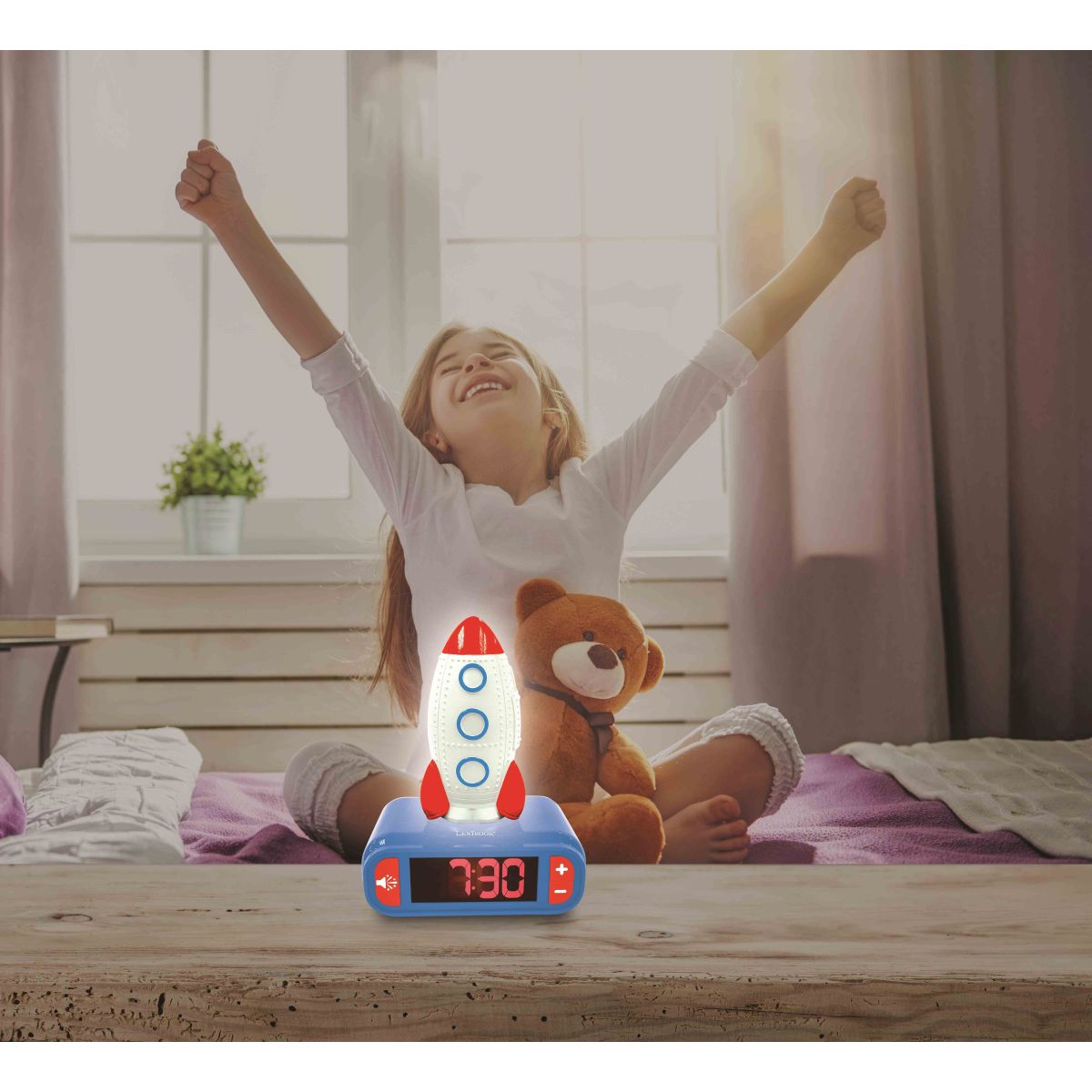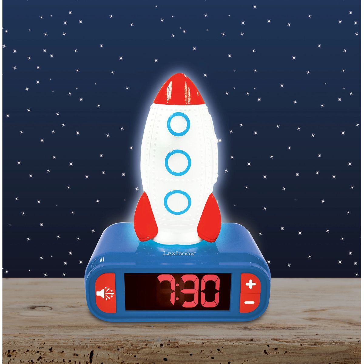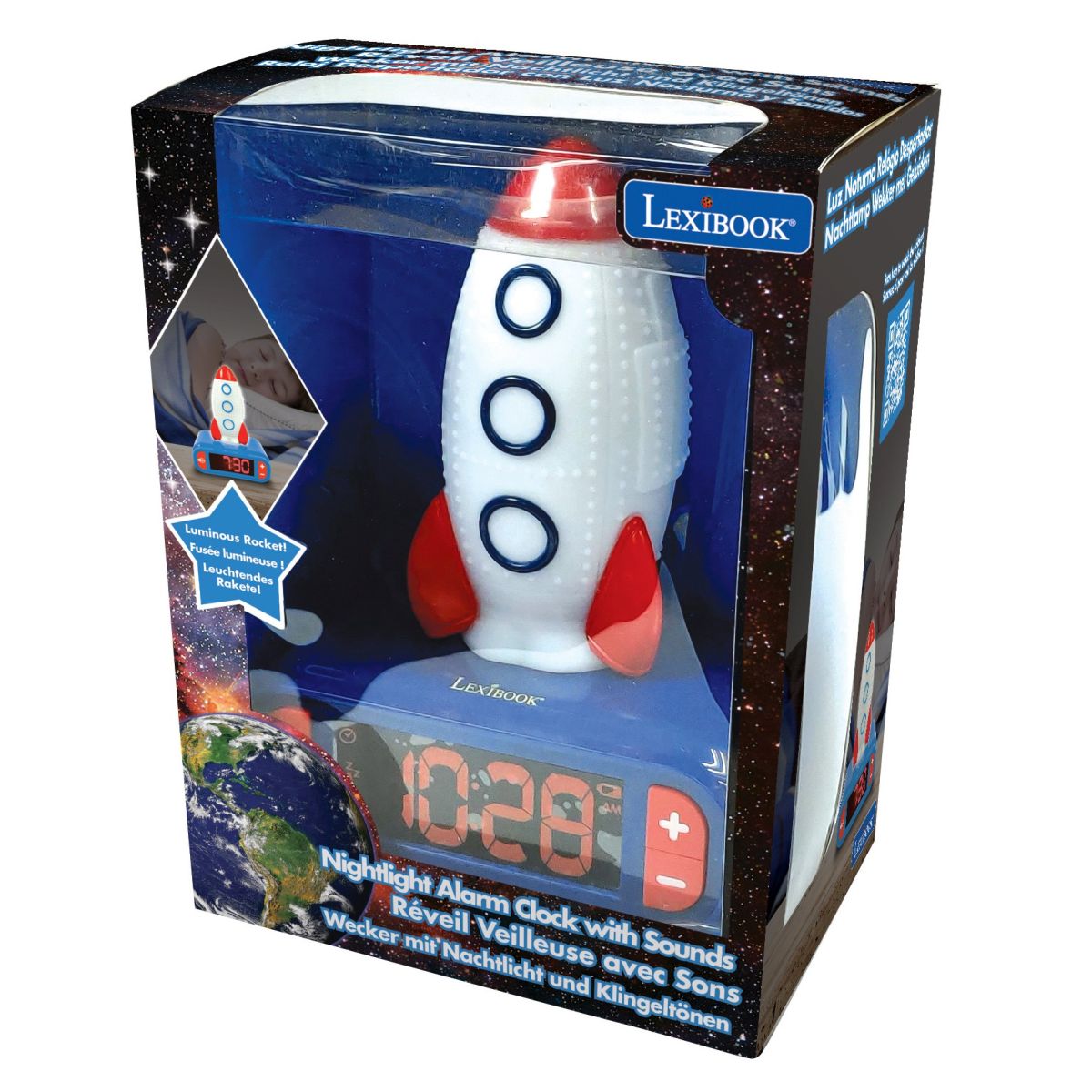 Lexibook budík so svietiacou raketou spríjemní ranné vstávanie vašim deťom a zároveň ozdobí ich izbu originálnym svetelným efektom. Prehľadný displej a jednoduché ovládanie umožnia používanie aj menším deťom.
