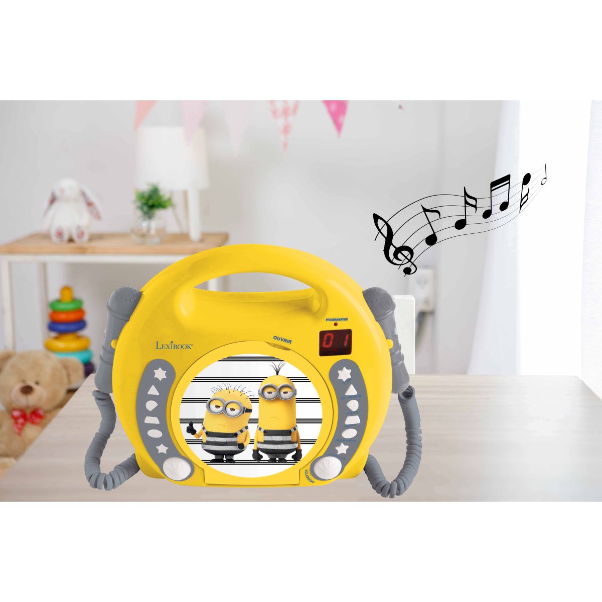 Lexibook CD prehrávač Mimoni s 2 mikrofónmi prináša detské karaoke pre zábavu doma aj na oslavy. Deti od troch rokov si môžu spoločne so svojimi kamarátmi alebo súrodencami užiť spev a hudbu vďaka dvom mikrofónom.