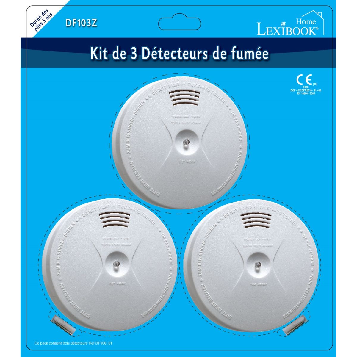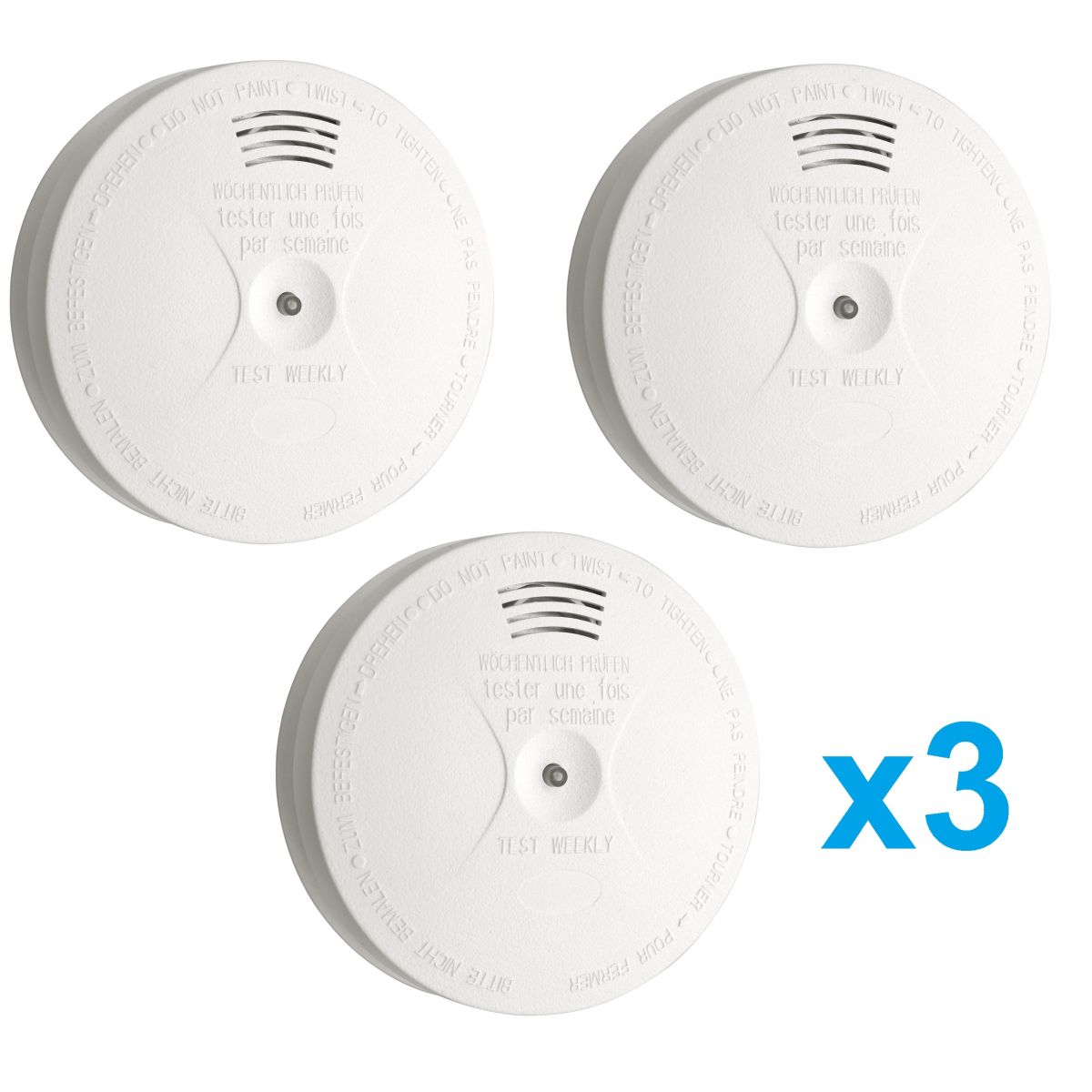 Detektory sú vybavené troma batériami typu 6F22 (9V), ktoré sú súčasťou balenia – pripravené ihneď na použitie! Balenie obsahuje 3 ks detektora dymu.