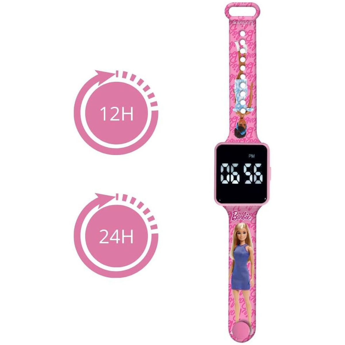 Digitálne LED hodinky Lexibook Barbie sú ideálne pre deti, ktoré sa učia rozpoznávať čas. Ponúkajú možnosť prepínania medzi 12- a 24-hodinovým formátom podľa želania dieťaťa. Hodinky sú ľahké a majú nastaviteľný remienok prispôsobiteľný veľkosti detského zápästia pre maximálne pohodlie. Jednoduché ovládanie zabezpečuje bezproblémové používanie aj najmenším prstom. Batéria typu CR2032 je už súčasťou balenia, takže stačí len nasadiť hodinky a začať objavovať svet času spolu s obľúbenou Barbie.