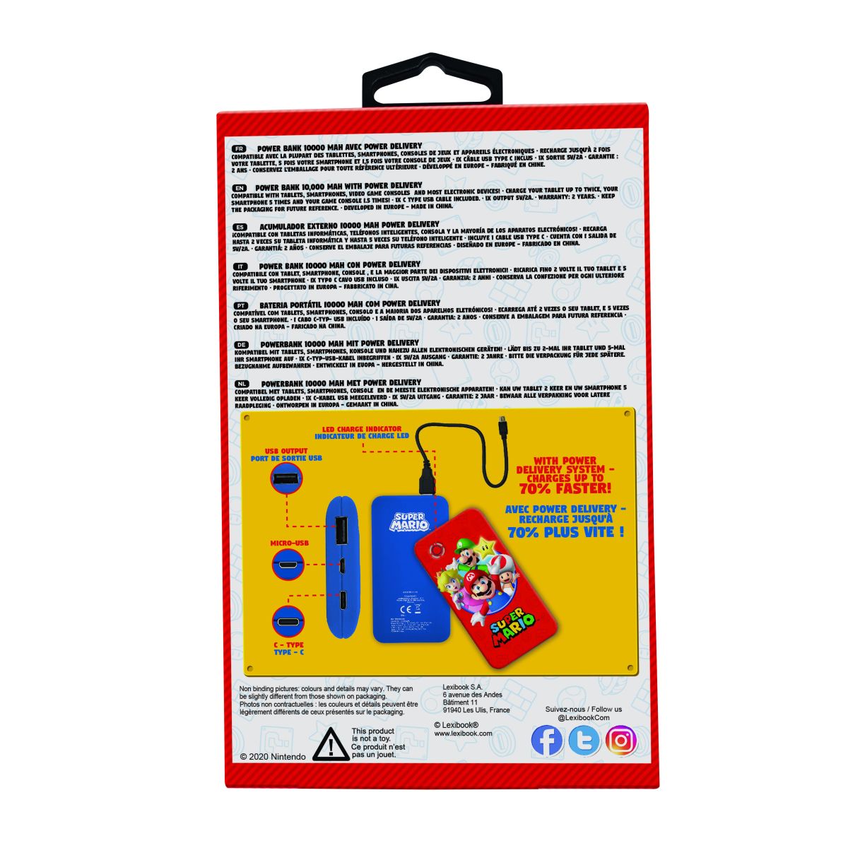 Power banka Lexibook Super Mario s kapacitou 10 000 mAh je ideálny spoločník pre malých dobrodruhov! Rýchlonabíjanie zabezpečí, že ich zariadenia budú vždy pripravené na použitie doma aj vonku.