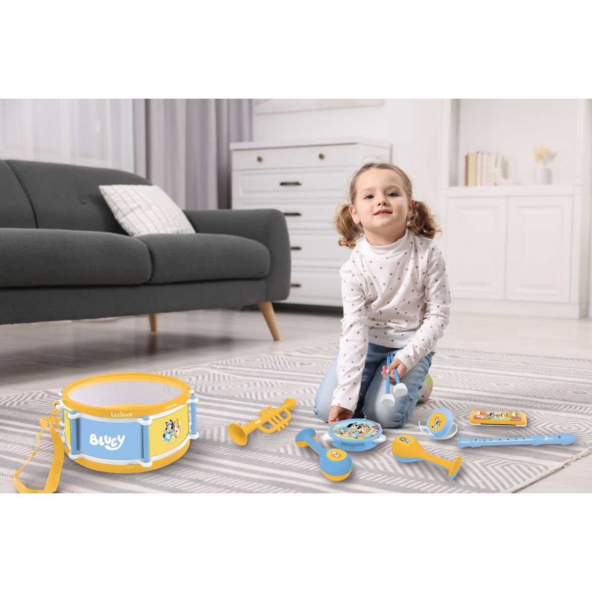 Sada siedmich hudobných nástrojov Bluey od Lexibooku prináša deťom zábavu a rozvoj hudobného cítenia už od troch rokov. Vďaka premyslenému dizajnu a bezpečnému spracovaniu môžu malí hudobníci objavovať rôzne zvuky doma i na cestách bez obáv.