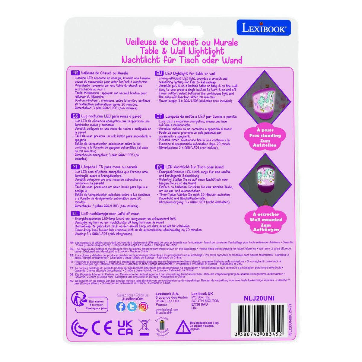 Lampička Lexibook Jednorožec rozžiari detskú izbu príjemným svetlom, ktoré pomáha upokojiť deti pred spaním. Dá sa použiť ako stolná alebo nástenná lampa, čo ju robí veľmi praktickou do každej detskej izby.