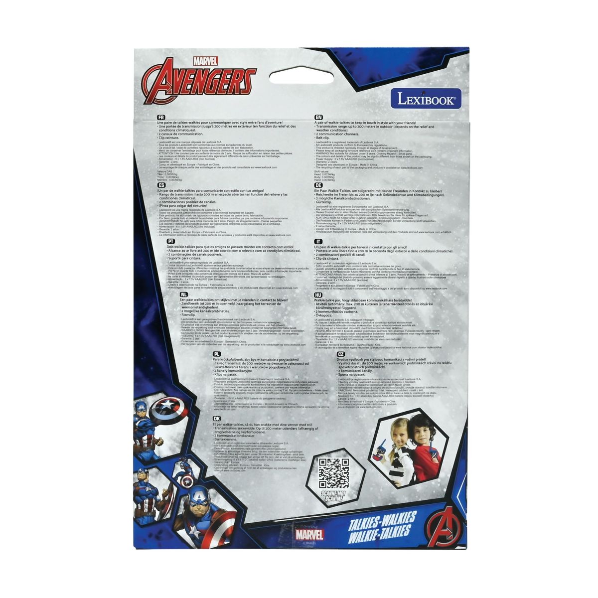 Lexibook vysielačky Avengers sú perfektným spoločníkom pre deti pri hre vonku aj doma. S dosahom až do 200 metrov umožňujú jednoduchú komunikáciu medzi kamarátmi alebo súrodencami. Ich ovládanie zvládnu aj menšie deti vďaka jednoduchej manipulácii. Odolná konštrukcia zabezpečuje dlhodobé používanie bez obáv z poškodenia.