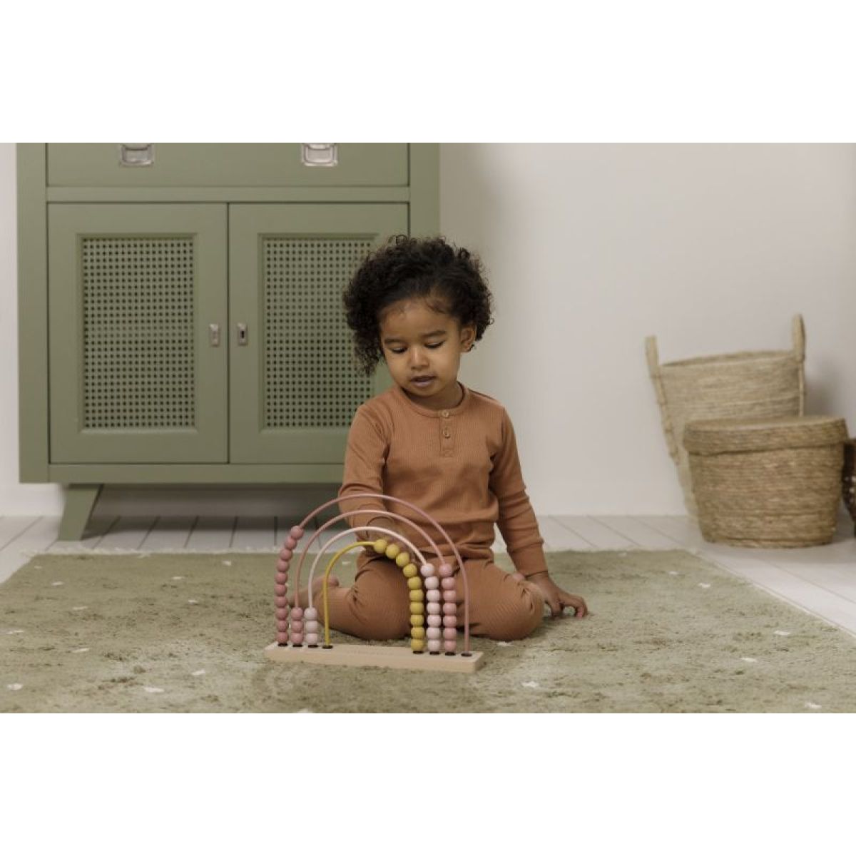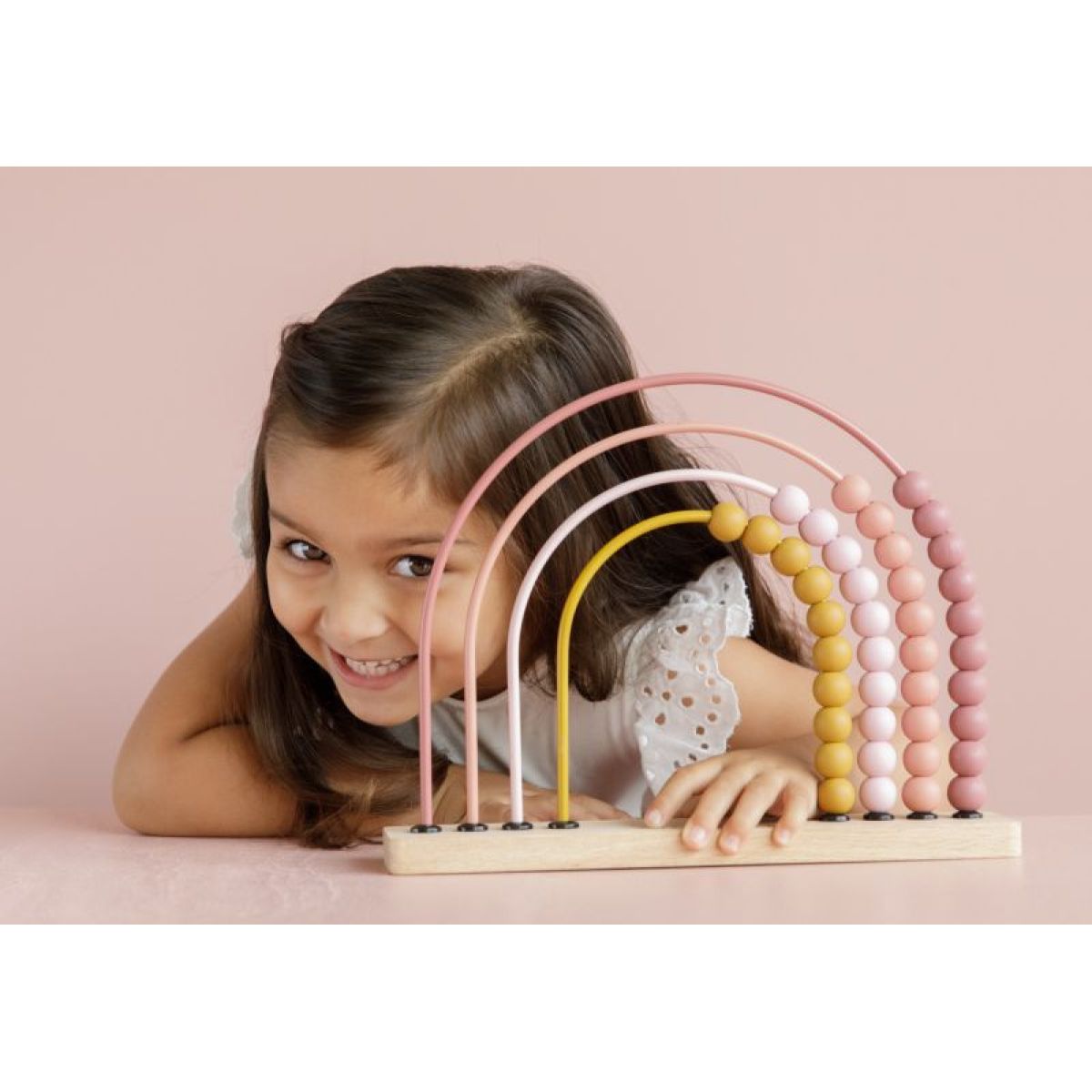 Dievčatká a chlapci sa môžu formou hry pri posúvaní korálikov začať zoznamovať so základným počítaním. Dúha sa ako symbol radosti a šťastia môže stať príjemným dizajnovým doplnkom detskej izbičky.