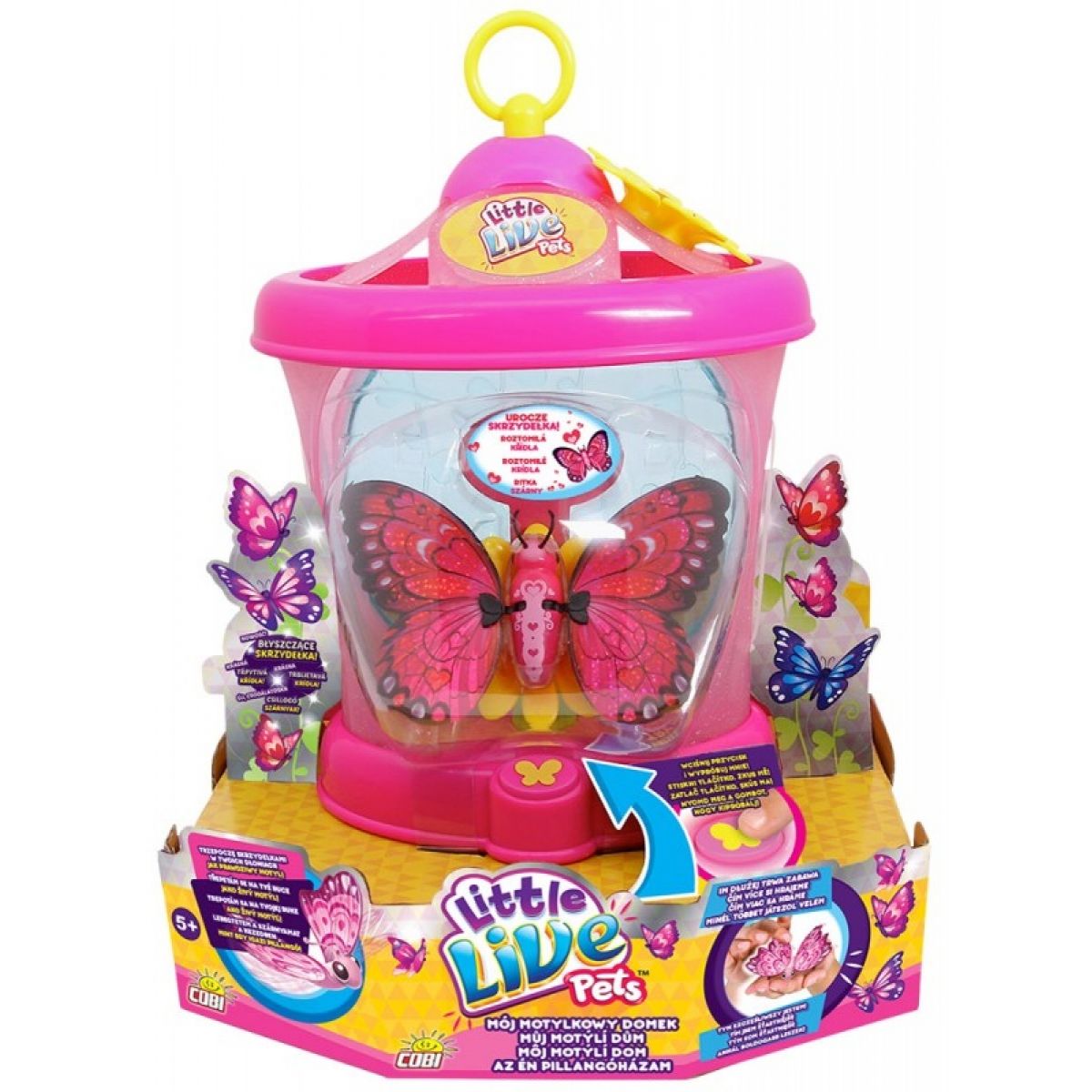 S motýlkem si holčičky a kluci mohou pohrát doma v pokojíku, ale také ho mohou vzít v jeho domečku na louku a užít si motýlka, když ožije.