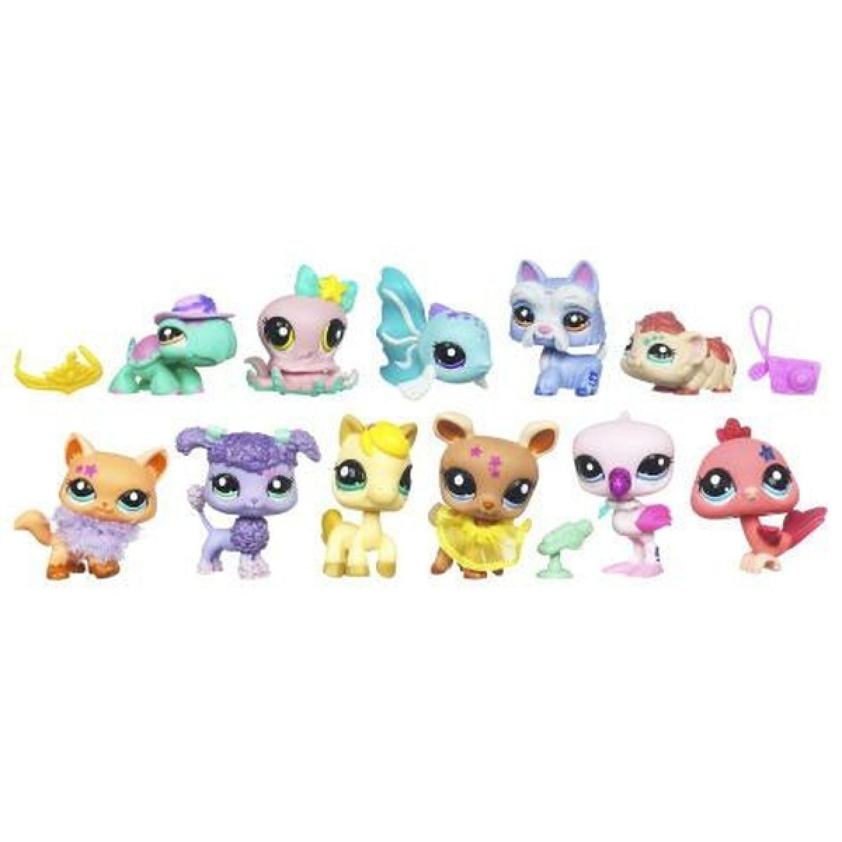 Překrásná sada 11 kusů sběratelských zvířátek Littlest Pet Shop.