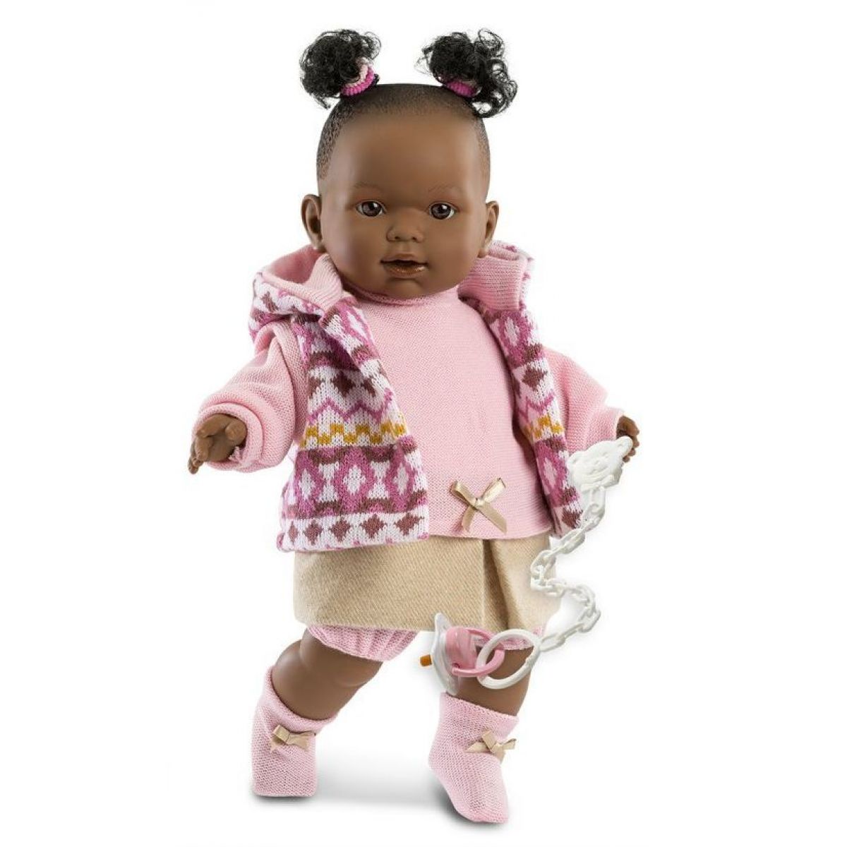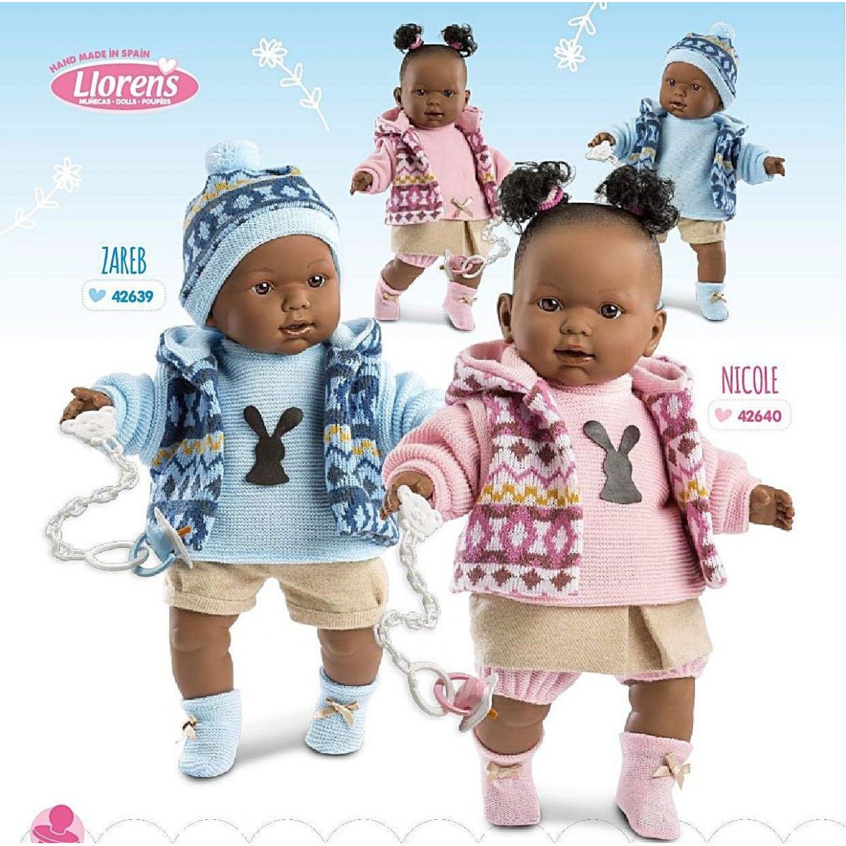 Nicole Llorona je jednou z krásných panenek Llorens. Holčička má měkké látkové tělíčko. Tmavé vlásky, které nejsou po celé hlavě, má vyčesány do dvou culíčků. Šatičky jsou laděny do světle růžové barvy, vestička je také s růžovým vzorem, ponožky ladí s oblečením. Miminko umí po stisknutí říkat "mama", "papa" a také plakat. Holčičky ho mohou utišit pomocí dudlíčku. Očička panenky nemrkají.