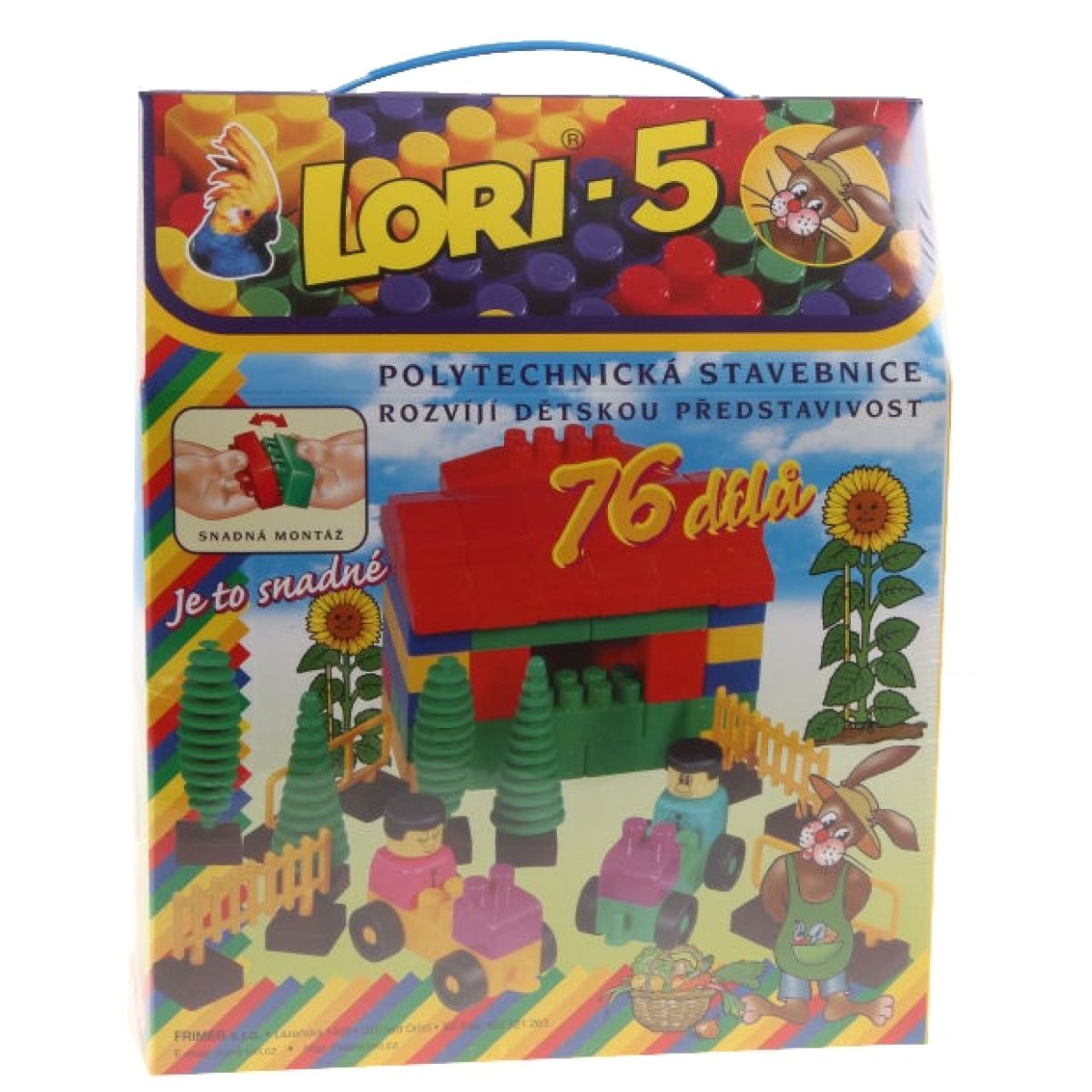 LORI 005 Stavebnica 5 Plastová stavebnica, kocky, na skladanie a stavanie Kocky sú hračky, ktoré podporujú logické uvažovanie iu najmenších detí. Všetky kocky sú vyrobené zo zdravotne nezávadného materiálu. Pri ich stavaní si dieťa precvičí motoriku a logiku. Zapojí aj svoju fantáziu. Stavebnica Lori poskytujú maximálny priestor pre Vašu fantáziu. Vo všetkých baleniach stavebníc Lori nájdete rad stavebných dielov a doplnkov, z ktorých si postavíte všetko, na čo pomyslíte napr modely domov, áut, vlakov, lietadiel, rakiet, zvierat, stromov a viac. Zostáva len dodať, že všetky stavebnice označené logom Lori sú navzájom kompatibilné, čo Vám umožní pri nákupe všetkých typov balenia postaviť napr aj väčšie hrad alebo zámok. Stavebnica LORI - 5 - 6 typov kociek + striešky, vagóniky, panáčikovia, stromčeky a plôtiky. Balenie obsahuje 46 kociek na stavanie, 6 kociek typu strecha, 2 panáčikov, 4 kocky plotu, 4 stromčeky a 2 kocky s kolieskami. Hračky » Stavebnice » LORI 005 Stavebnica 5
