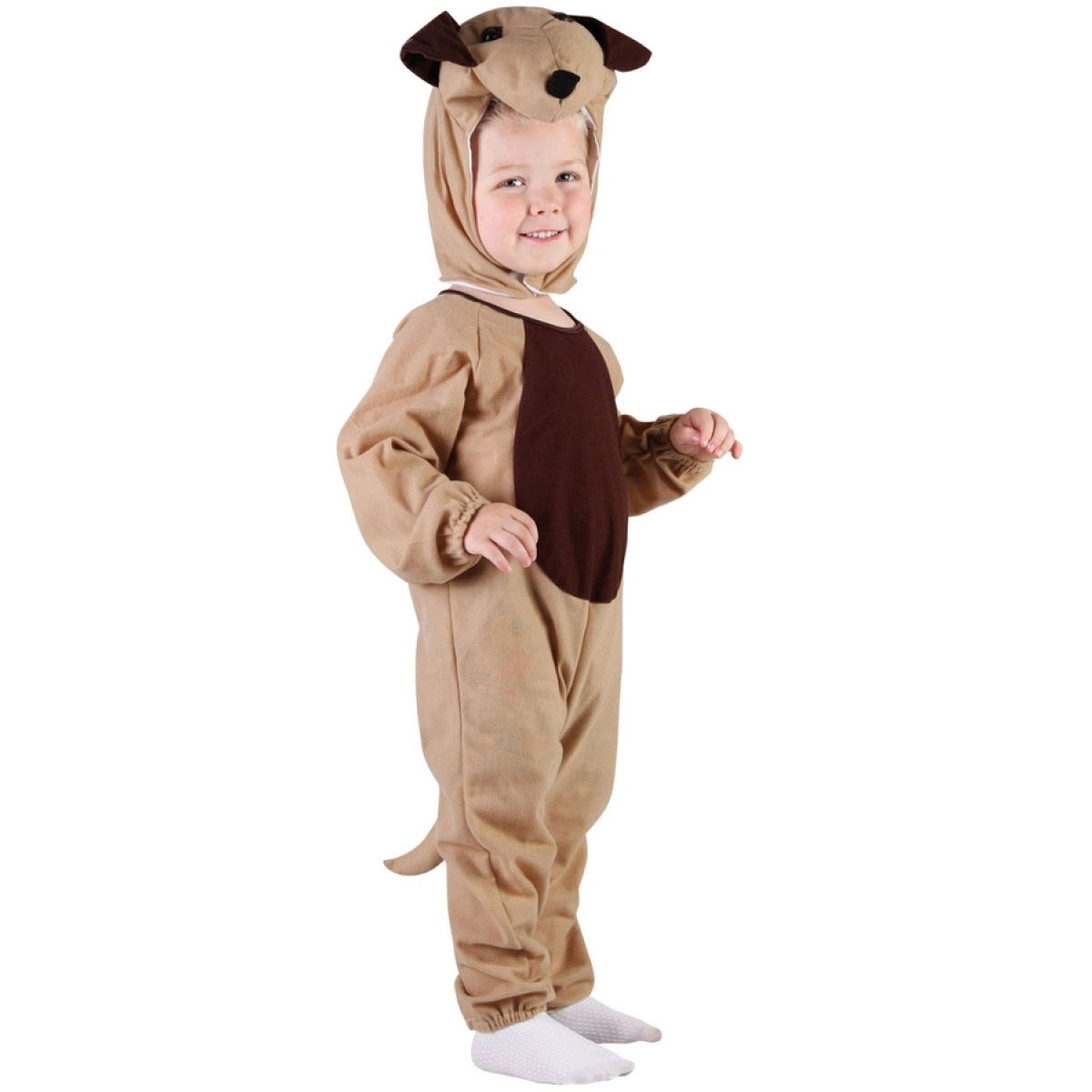 Béžové štěňátko, i takto lze pojmout účast na karnevalu. Úžasný převlek pro malého milovníka pejsků. Kostým se skládá z kombinézy s ocásekm a s kapucou se štěněcí hlavou. Boty nejsou součástí balení, Určeno dětem do velikosti 104 cm.
