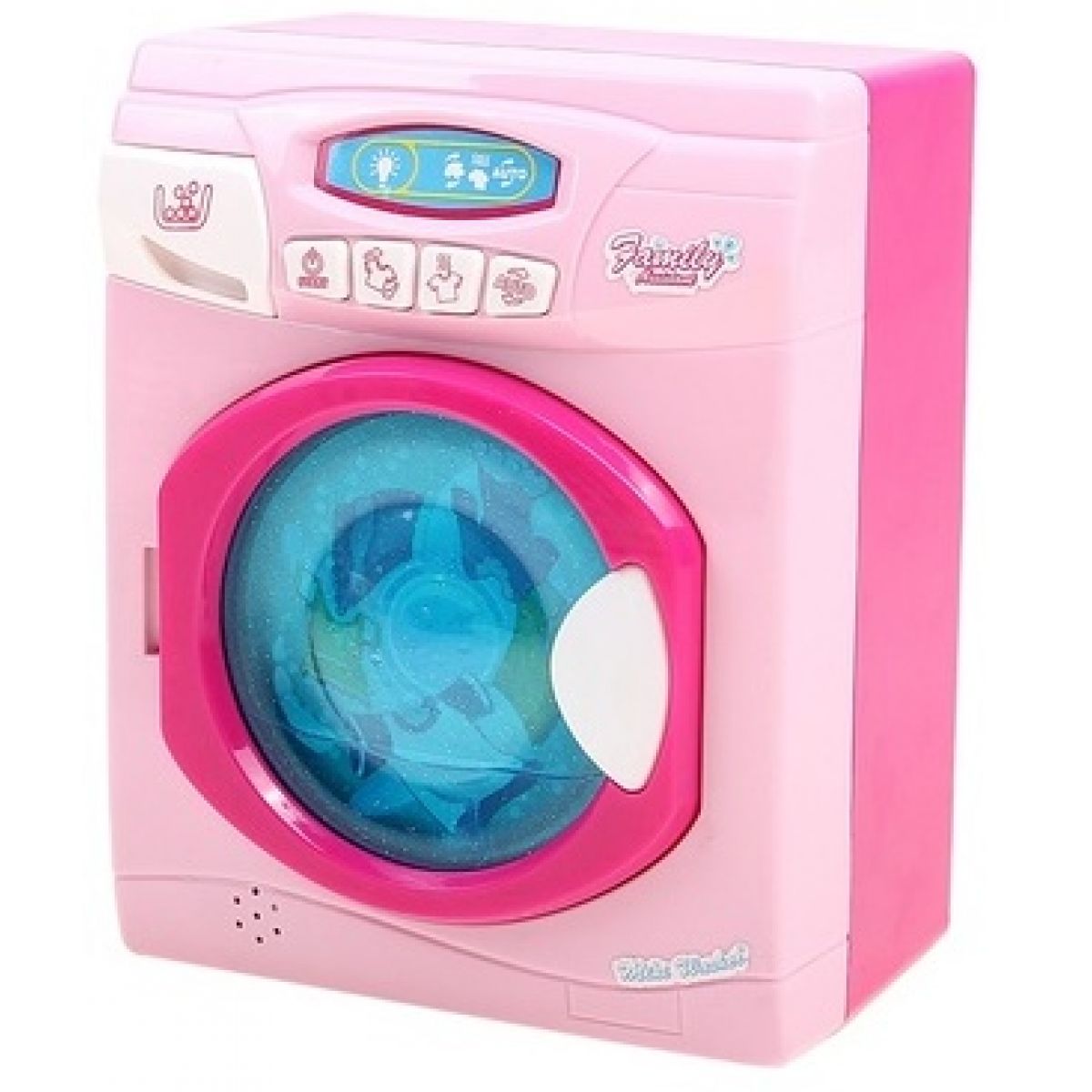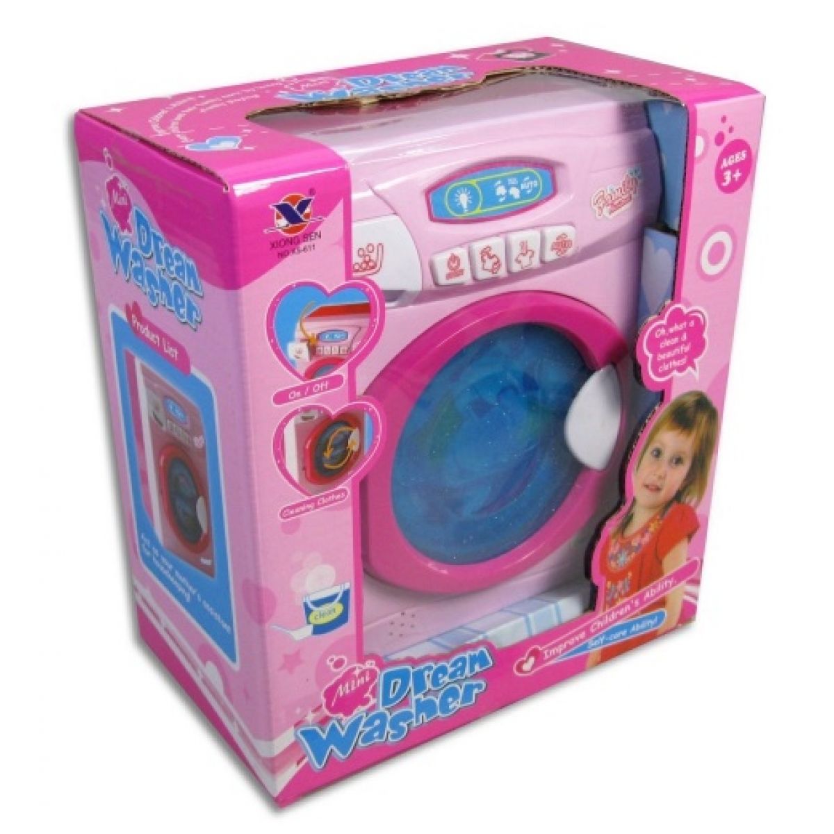 Růžová pračka s předním otvíráním dvířek a plněním, je replikou těch velkých, které používají dospěláci. Pocit opravdového praní navozuje voda ve dveřích. Po stlačení tlačítka start vydává realistické zvuky. V přední části je výsuvný šuplíček na prášek na praní a 3 tlačítka na výběr potřebného programu.
