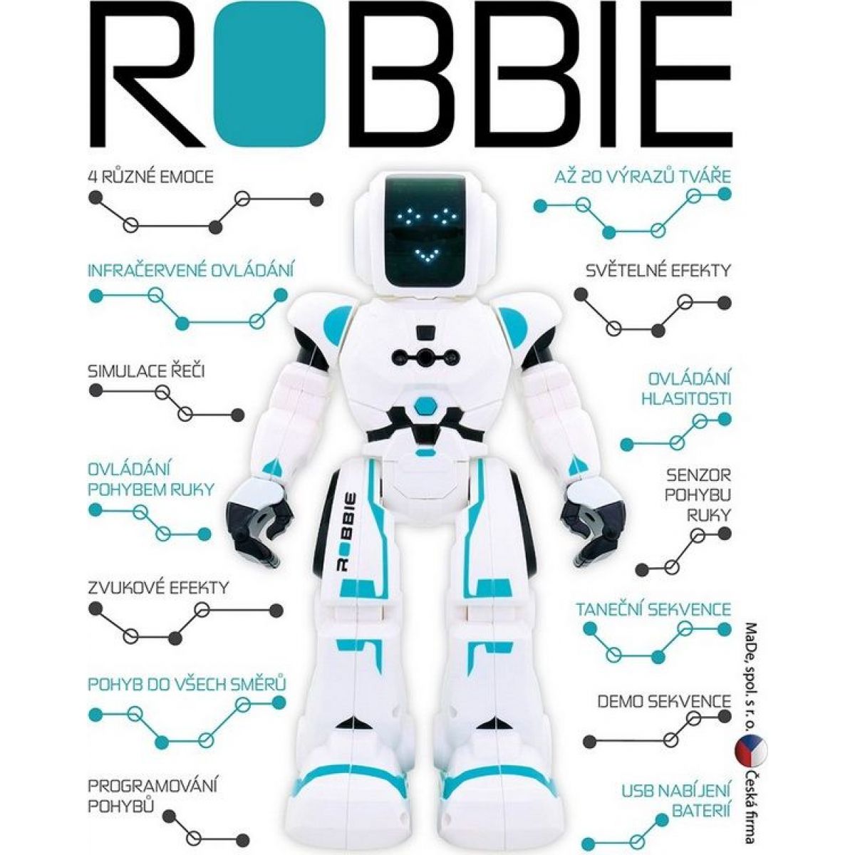 • Robbie má 4 základné nálady a hovorí robotickým jazykom