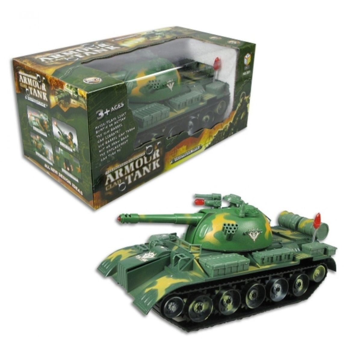 Tank čeká na kluky, kteří chtějí vyzkoušet řídit silně obrněné vojenské vozidlo. Pokud tank narazí na překážku, otáčí se a vyhledává novou trasu.