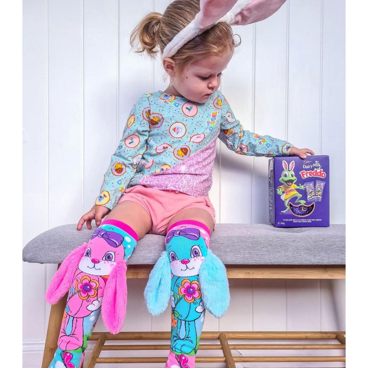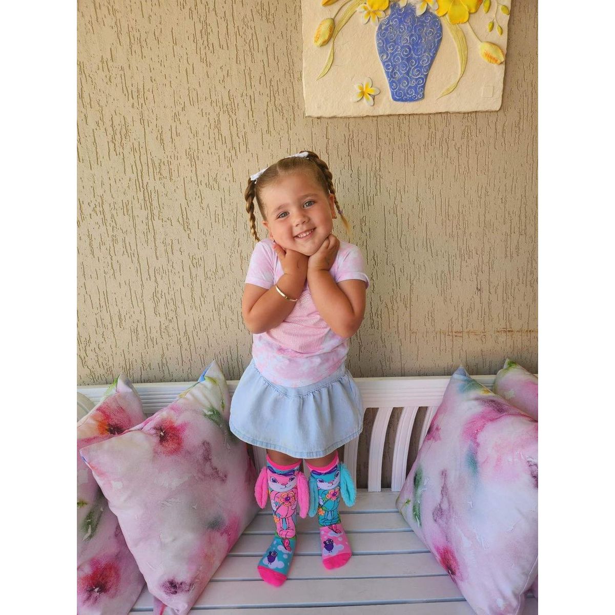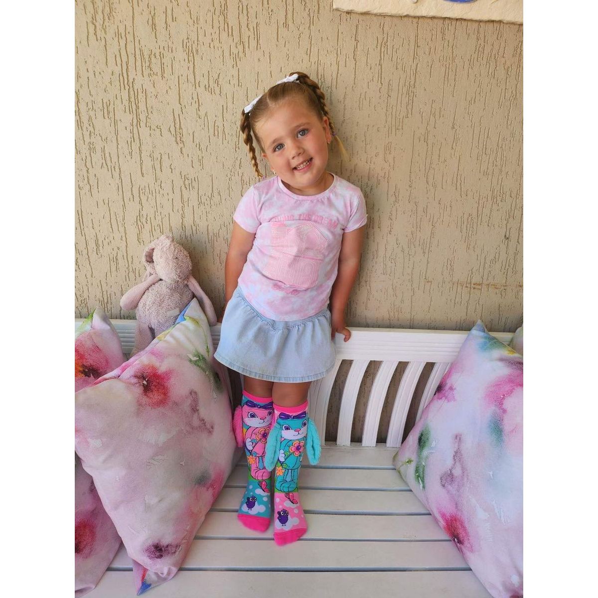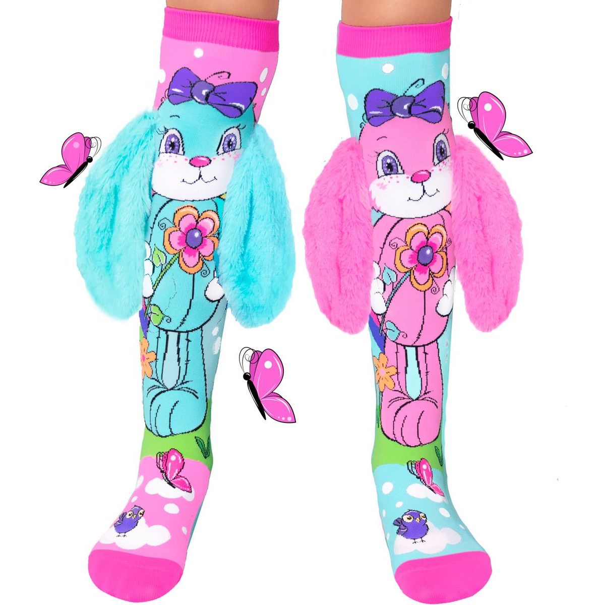 Roztomilé Madmia Bláznivé podkolienky HUNNY BUNNY s mäkkými uškami sú ideálne pre deti aj dospelých od 3 rokov. Pastelové farby a zajacový motív spravia radosť každému malému objaviteľovi a rozveselia každý deň plný hier či osláv. Ponožky sú pohodlné, mäkké a vyrobené z kvalitného materiálu, ktorý dlho vydrží. Skvelé na špeciálne príležitosti aj bežné dni plné zábavy.