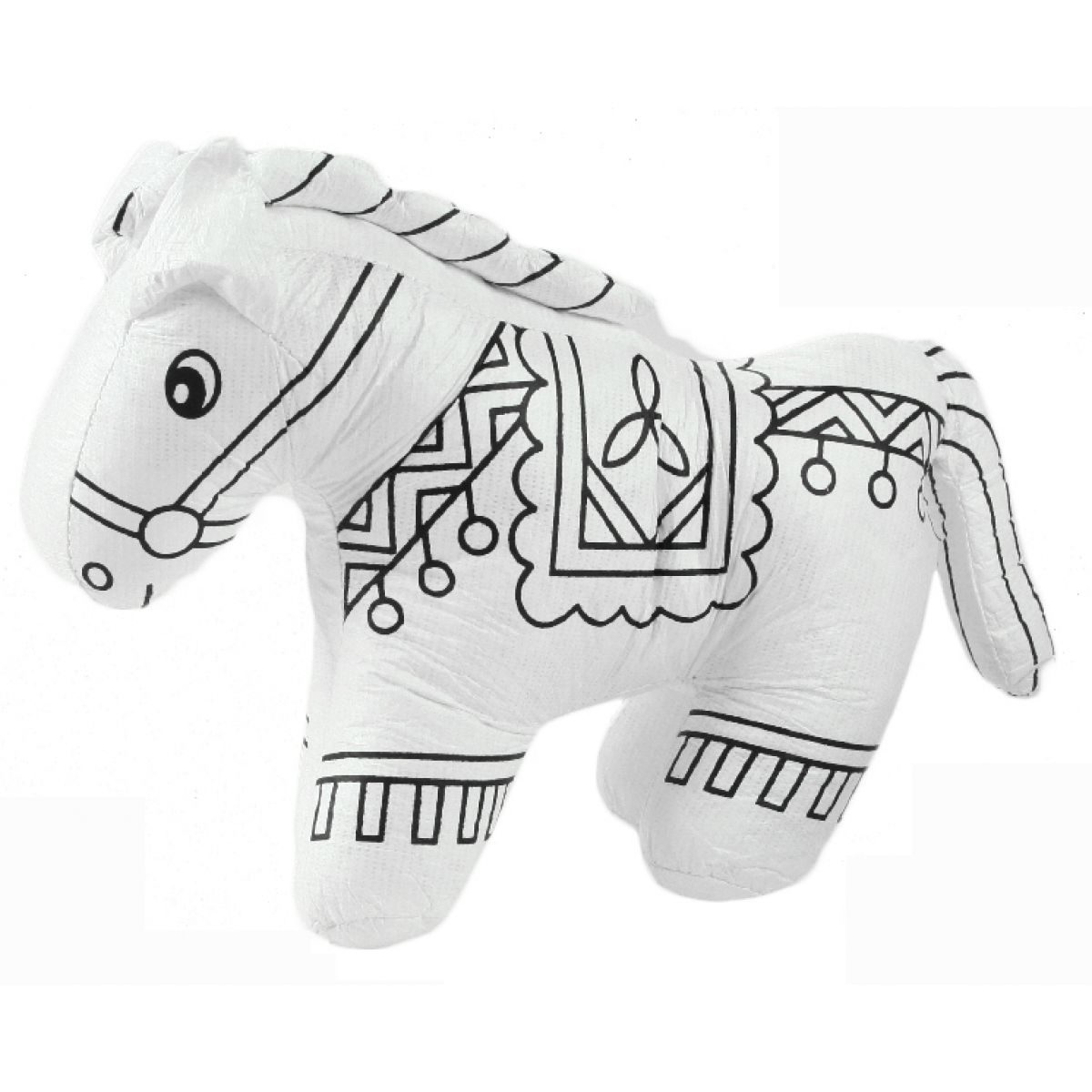 Textilní koník je měkkounká lehká hračka pro děti od 3 let, které rády tvoří a chtějí dát své hračce originální podobu. Mají k dipozici 4 barevné fixy přiložené v balení. Fixy jsou pratelné, proto je možné povrch oživovat a opětovně vytvářet.