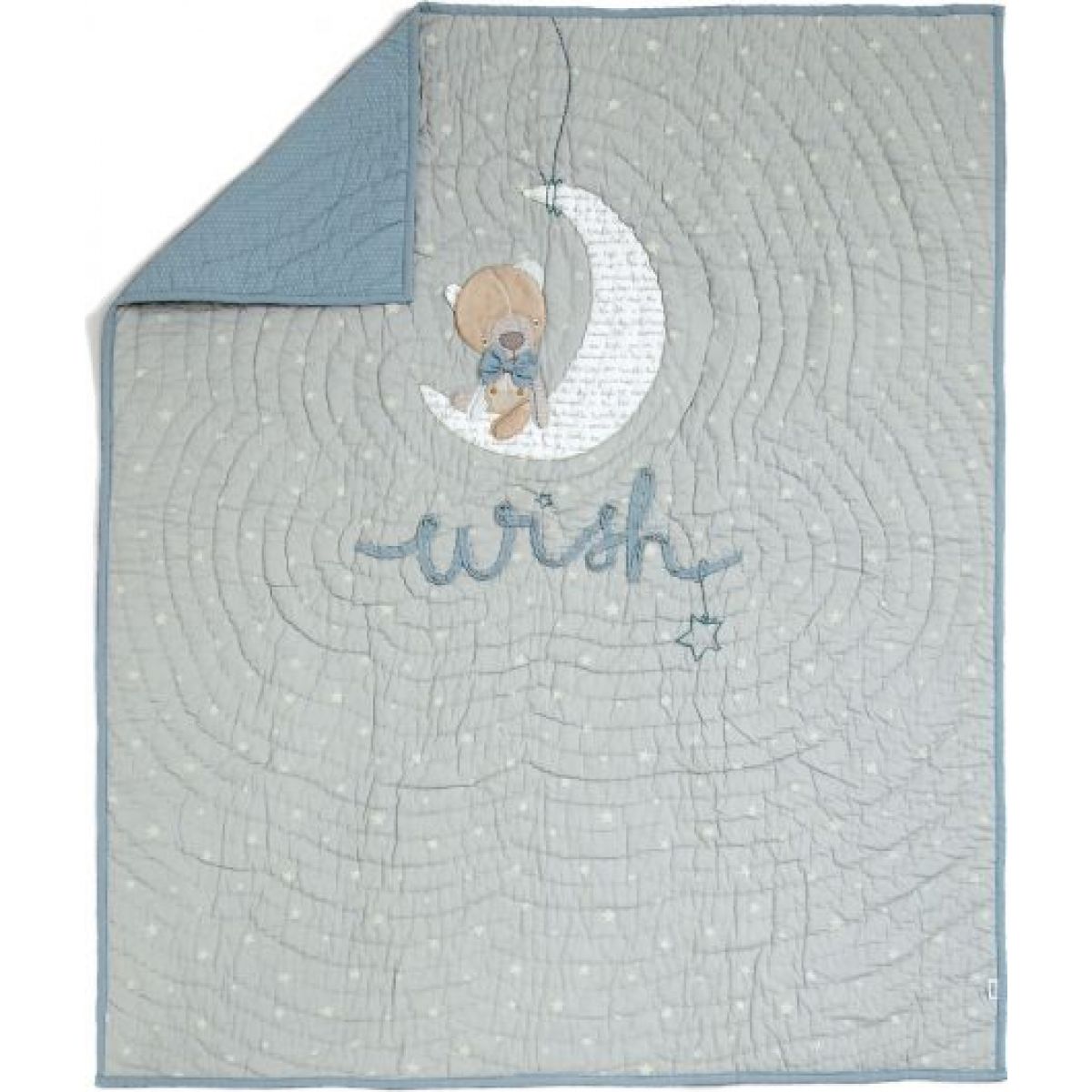 Komfortné vyšívaná prikrývka s motívmi kolekcie Millie & Boris, ladená do modrej farby, je určená pre bábätká od jedného roka.