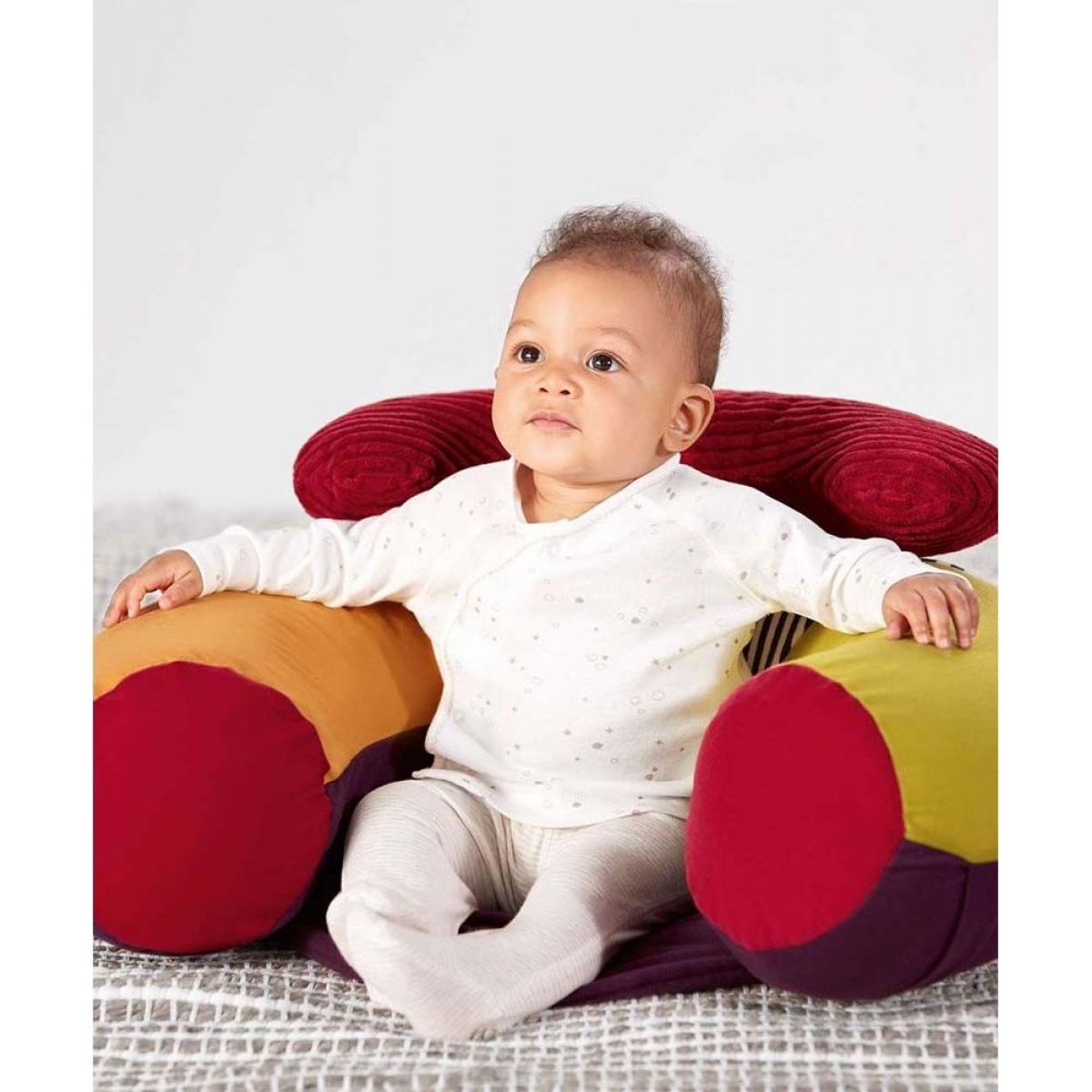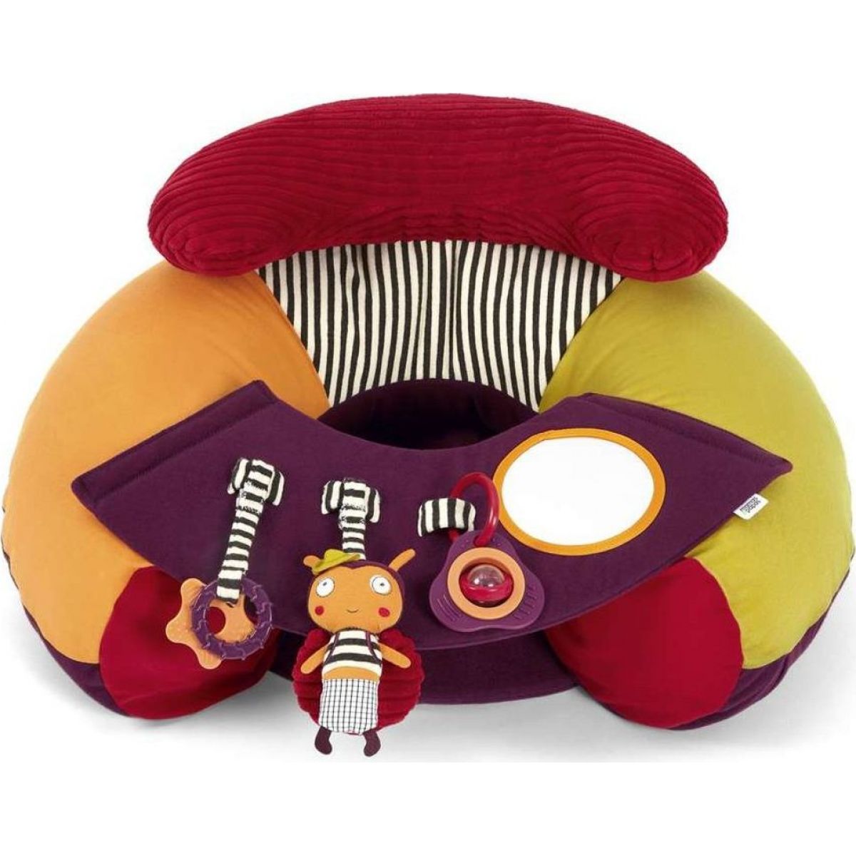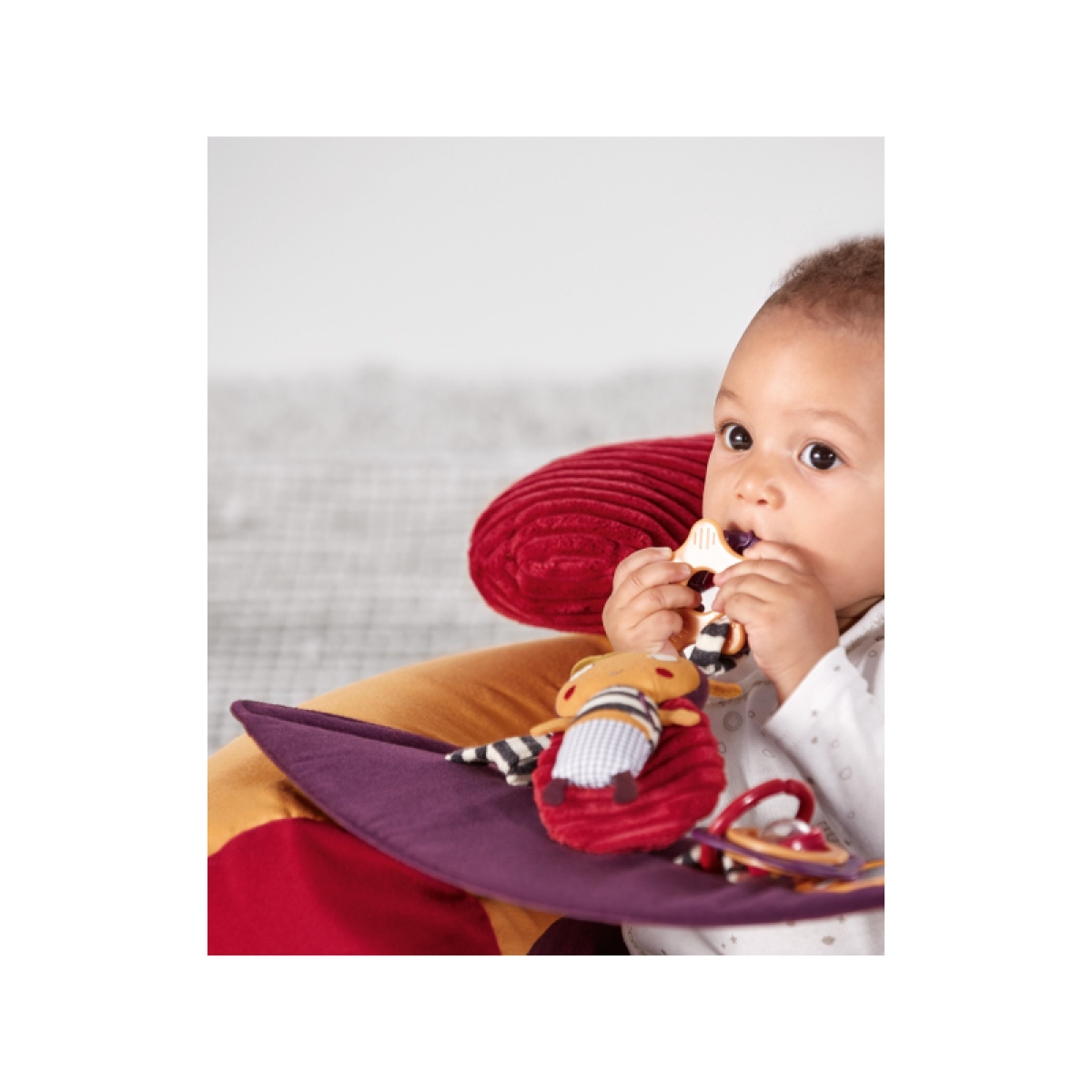 Vankúšik v tvare líšky s rôznorodými aktivitami podporuje dieťa k hre na brušku. Pre malého dojčaťa, ktorý trávi väčšinu dňa aj noci ležaním na chrbte, je dôležité, aby trávil niekoľkokrát denne čas ležaním na brušku a takzvaným" pasením koníčkov ". Poloha na brušku prináša dieťaťu iný pohľad na svet a posilňuje krčné a chrbtové svaly, ktoré neskôr umožňujú dieťaťu začať sa pretáčať, liezť a sedieť bez opory. Vankúšik ponúka dieťaťu rôzne textúry na skúmanie, hrkálka, hryzátko, pískatko, šuštiace časti i bezpečné zrkadielko. Výrazné farby podporujú rozvoj zraku dieťaťa. Vankúšik ľahko s pomocou suchého zipsu premeníte v hračku v podobe líšky. Môže tak slúžiť aj ako krásna dekorácia v detskej izbe. Vhodné pre deti od narodenia. Rozmery: 48 x 39 x 13 cm