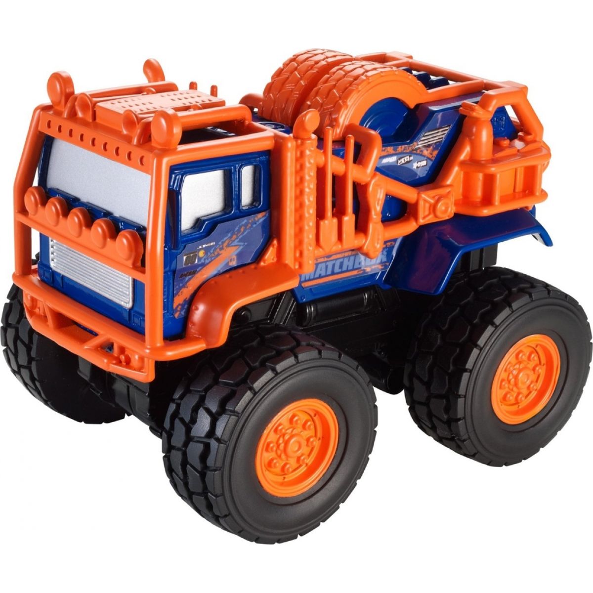 Modro oranžový kamion je modelem zpracovaným v měřítku 1:43. Pohonem je motorizovaný setrvačník. Tím auto zdolává těžké terény a kluci si mohou užít pořádné dobrodružství. Nelze použít s některými sadami Matchbox.