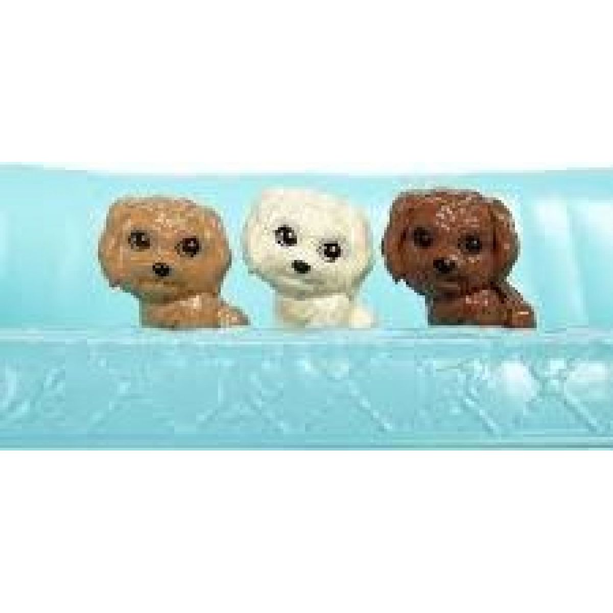 Holčičky mohou pomoci panence Barbie s péčí o tato krásná štěňátka, která se mají pravidelně omývat. Tak mohou holčičky zahlédnout i červené srdíčko, které odhaluje pohlaví štěňátka.