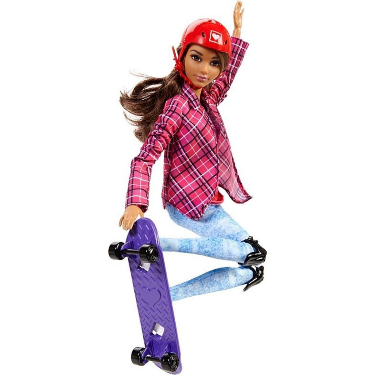 Panenka Barbie zkouší různé sporty. Každá z panenek je oblečena v patřičné uniformě a je připravena vyzkoušet svou novou profesi.