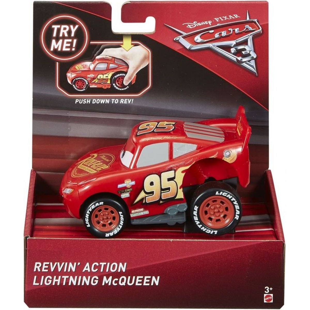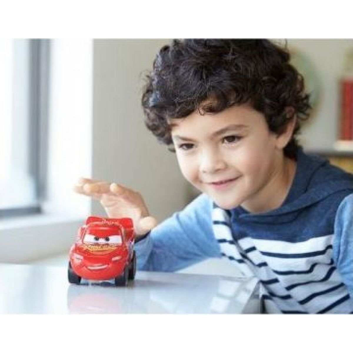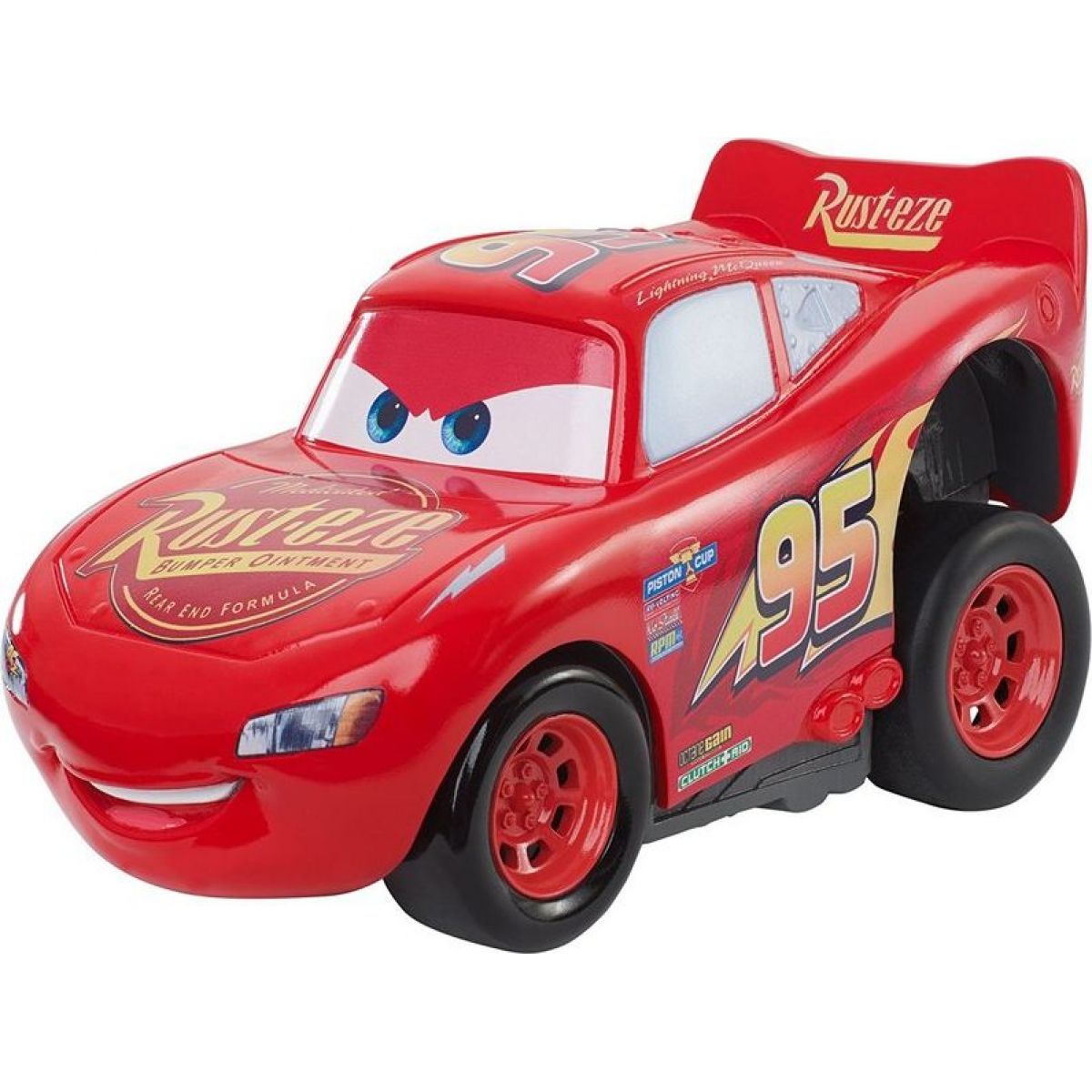 Flash McQueen ve svém červeném plášti čeká na odvážné jezdce, kteří ho vypustí na závodní dráhu.