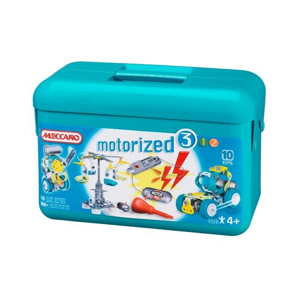 Box s díly a 6V motorkem na sestavení 10ti motorizovaných modelů.