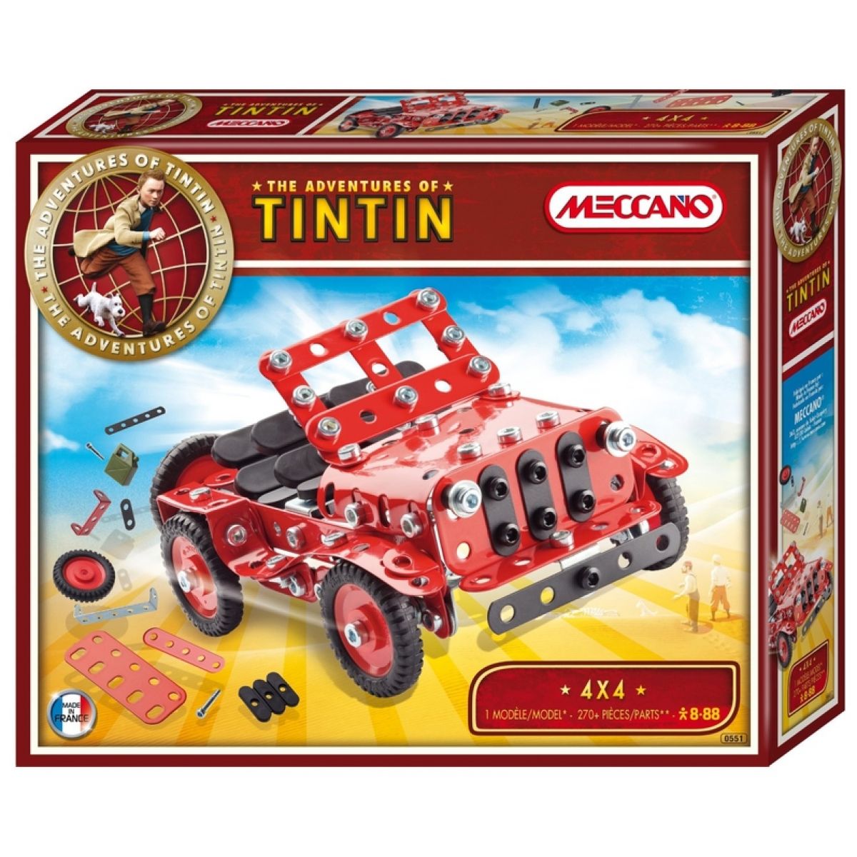Stavebnice Tintin Jeep s 270 dílky, přináší malým konstruktérům možnost propadnout do tajů mechaniky. Mohou si smontovat tento model terénního jeepu aby se s ním mohli vydat jako Tintin a kapitán Haddock na cestu za pokladem. Stavebnice má propracované dílky k sešroubování jednoho, co nejvíce realistického modelu.