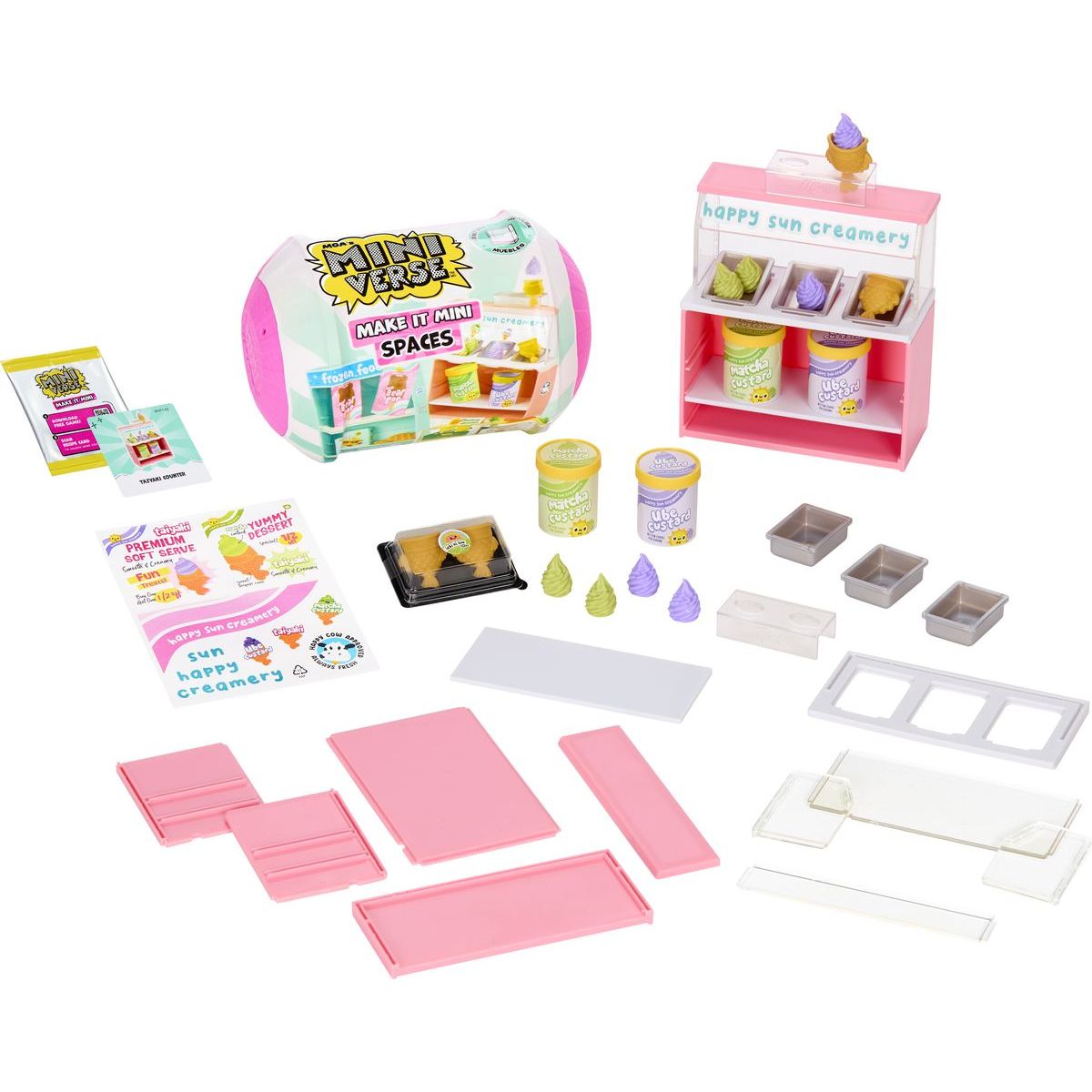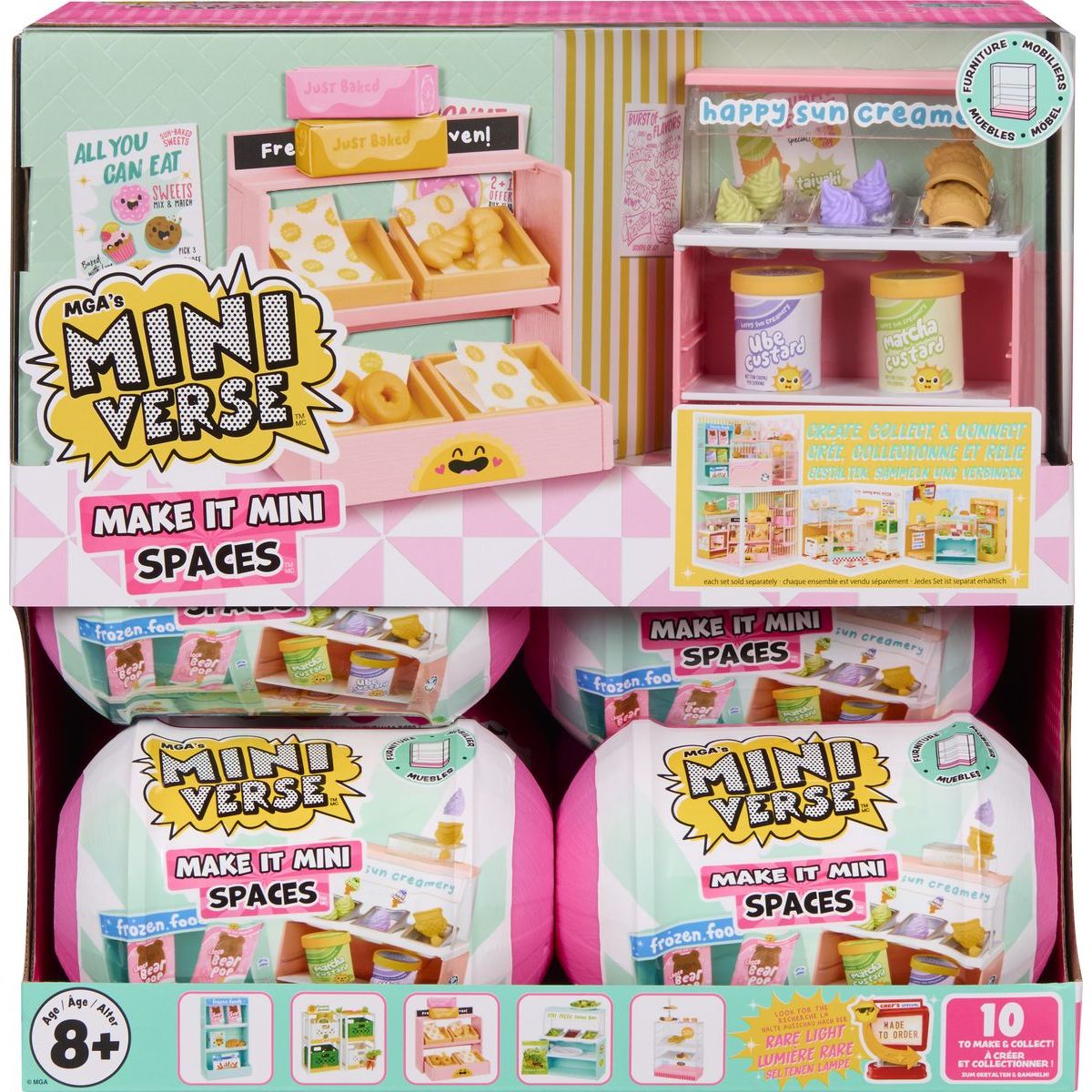MGA's Miniverse – Make it Mini Nábytok do miestností ti umožní vytvoriť krásne malé svety! V tomto sete nájdeš všetko potrebné na zostavenie výstavných skríň, regálov alebo bufetových stolíkov pre mini jedlá a nápoje. Každý kus nábytku má svoj vlastný štýl – môžeš si vybrať modernú vitrínu, retro poličku alebo roztomilý pultík. Stačí rozbaliť balenie a začať tvoriť! Táto zábava je ideálna pre deti od ôsmich rokov, ktoré rady vyrábajú a vystavujú svoje obľúbené miniatúry.